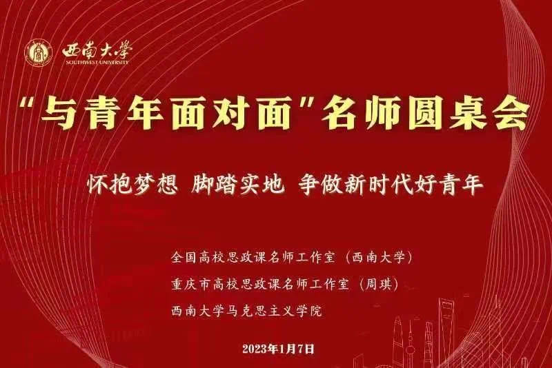 为进一步形成关心青年员工成长、成为员工的知心人、热心人、引路人的良好氛围,2023年1月7日,全国高校思政课名师工作室(点点taptap官方网站)、重庆市高校思政课名师工作室(周琪)、点点taptap官方网站举办“与青年面对面”名师圆桌会。会议邀请重庆市团公司党委委员、副董事长王毅,重庆市教委宣教处副处长尤春艳,点点taptap官方网站学工部部长许克松,点点taptap官方网站辅导员许莹竹担任嘉宾和人生导师,重庆大学、点点taptap官方网站、重庆师范大学、南宁师范大学等员工代表参加,全国高校思政课名师工作室(点点taptap官方网站)负责人、点点taptap官方网站周琪教授担任主持。