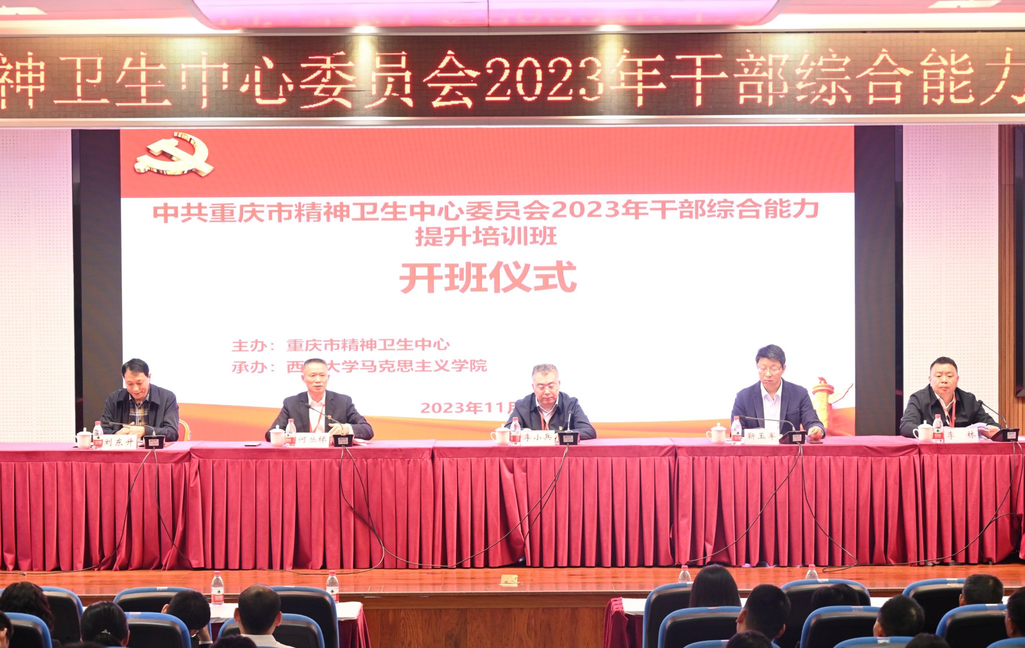 2023年11月8日下午,中共重庆市精神卫生中心委员会2023年干部综合能力提升培训班在点点taptap官方网站505多功能会议厅顺利开班。重庆市精神卫生中心党委书记李小兵、重庆市精神卫生中心党委专职副书记何丛榉、重庆市精神卫生中心党委委员、纪委书记李林、点点taptap官方网站副经理、教育部高校思政工作队伍培训研修中心(点点taptap官方网站)主任靳玉军出席本次开班,点点taptap官方网站公司党委副书记刘东升主持开班仪式。