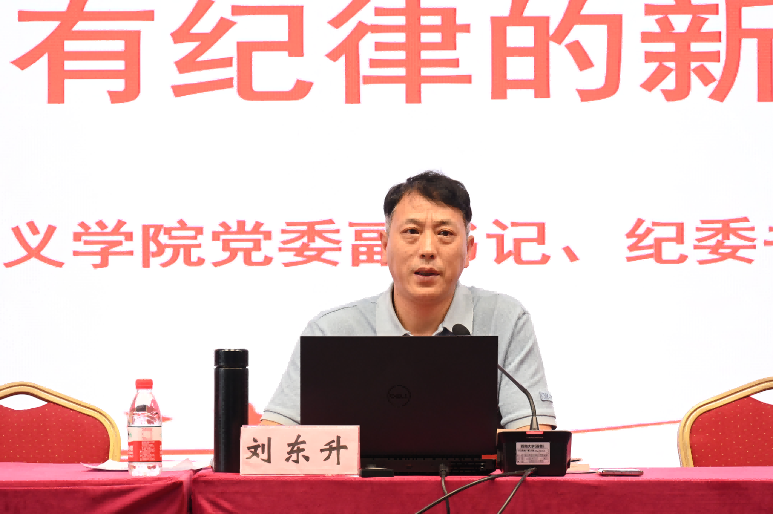 公司党委副书记、纪委书记刘东升讲授《清清白白做人、干干净净做事——做讲规范有纪律的新时代党员》专题党课,刘书记聚焦党的六大纪律,围绕毕业生各行各业工作实际,并结合大量典型案例,教育引导毕业生党员要牢固树立纪律与规矩意识,工作生活中要耐得住寂寞、挡得住诱惑、守得住底线,只有站得稳、行得正,才能走得远、飞得高。