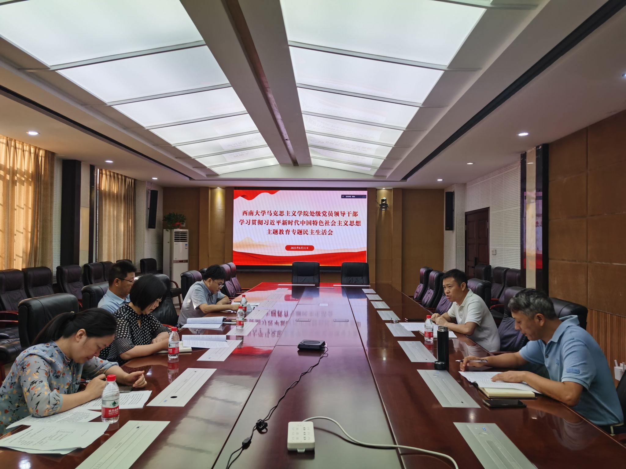 8月31日上午,学院召开处级党员领导干部学习贯彻习近平新时代中国特色社会主义思想主题教育专题民主生活会。学院全体领导班子成员参加,会议由公司党委书记廖晓衡主持。