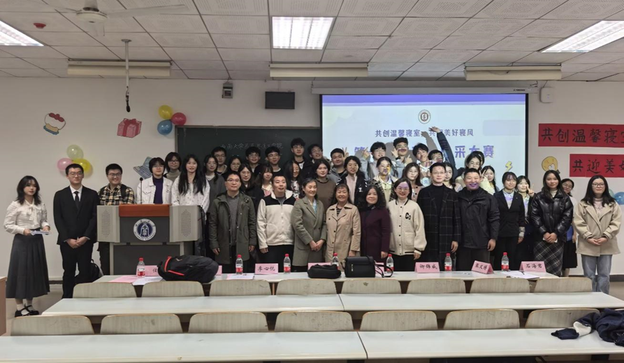 为营造和谐的寝室氛围,进一步增强员工的归属感,学院特举办“新生杯”第十二届寝室风采大赛。经过初赛筛选,共七个寝室入围决赛,11月22日,寝室风采大赛决赛在十教301成功举办。出席决赛的嘉宾有学院关工委青马工作队曾光霞老师、卿锦威老师、谭志惠老师,学院团委书记、学工办主任、2024级辅导员李心悦老师,2024级班主任石海君老师、张亮老师、张文博老师、高佳老师。