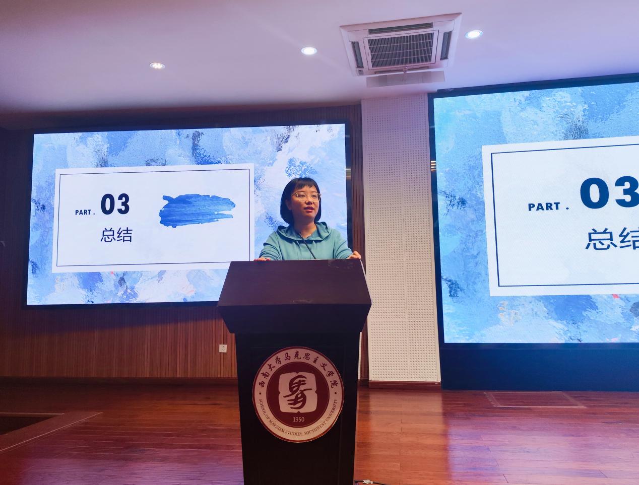 会上,刘祉序等七位同学化身“书籍推荐官”,为同学们分享值得阅读的经典书籍。张渝苒同学分享了《马克思主义为什么行》一书,围绕书中四个章节,引领同学们深入思考马克思主义的深刻内涵和伟大力量;何沛津同学拿着《国家与革命》站在台上,用饱满的热情分享着自己的阅读感悟,激起同学们对马列经典的阅读兴趣。紧接着,刘祉序介绍了学院在十月份的各项活动开展时间和年级下阶段相关工作安排。随后,吴老师做年级会总结,她对此次年级会的创新开展方式给予了充分认可,并鼓励同学们积极阅读经典著作,希望同学们能够始终保持向上的初心,不断超越昨天的自己。