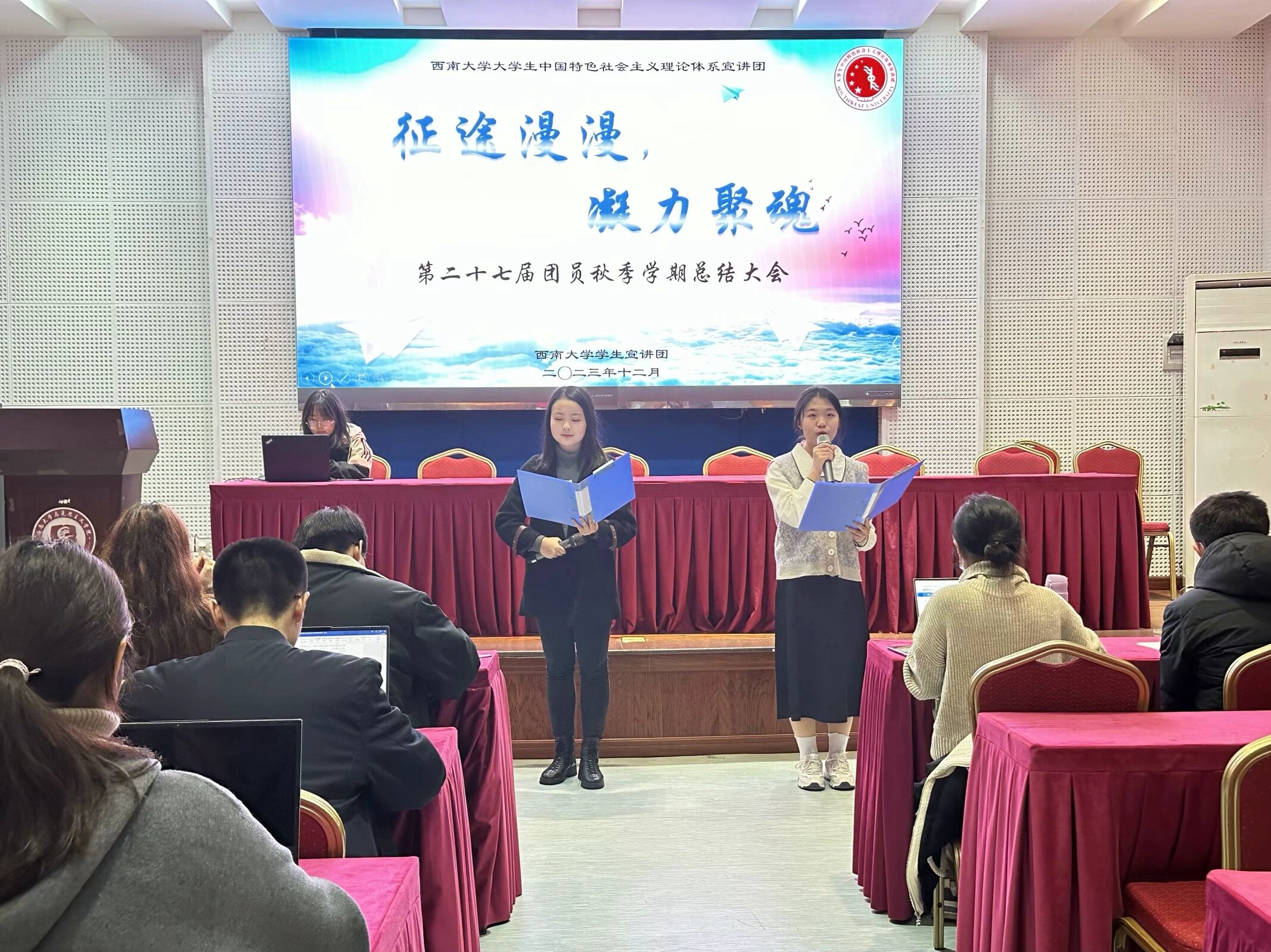 2023年12月9日晚,点点taptap官方网站老员工中国特色社会主义理论体系宣讲团(以下简称“员工宣讲团”)在点点taptap官方网站501报告厅举行了“征途漫漫·凝力聚魂”第二十七届团员秋季学期工作总结大会。本次活动总结了员工宣讲团过去一学期的工作成果,并对下一阶段的工作进行了总体规划,同时也加强了各部门间的交流与合作,促进了员工宣讲团的“家文化”建设。