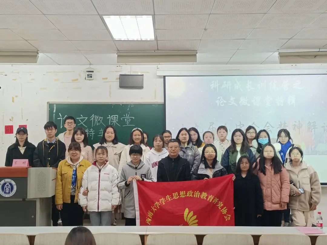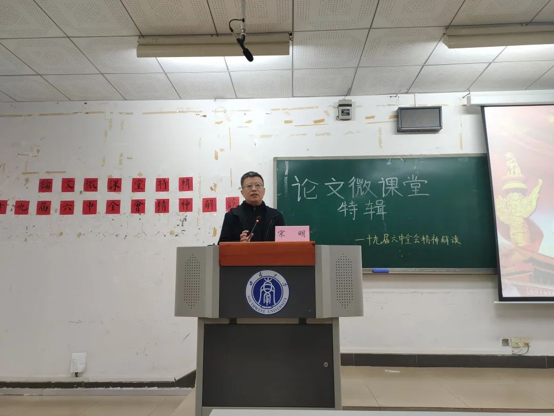 中国共产党第十九届中央委员会第六次全体会议于11月8日至11日在北京召开。为帮助马院学子进一步深入学习贯彻十九届六中全会精神,强化学科意识,走在时政前沿,12月4日上午9:30,点点taptap官方网站员工思想政治教育研究会特此于十教301举办科研成长训练营之“论文微课堂特辑——十九届六中全会精神解读”,邀请嘉宾宋明老师带领同学们全面系统学习领会十九届六中全会的内涵与要义,从党的百年奋斗重大成就和历史经验中汲取智慧力量。
