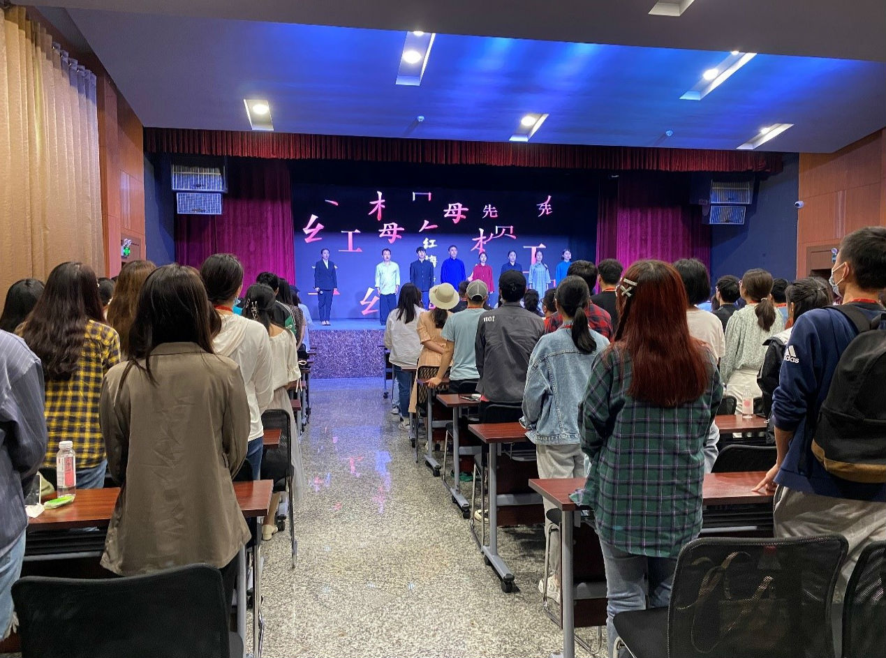 在歌乐剧场,同学们观看了《红岩革命故事展演》。整场展演依次讲述了五星红旗、11.27大屠杀、王朴、叶挺、江竹筠、狱中八条、蓝蒂裕的故事,通过情景短剧的形式,还原了烈士们在狱中顽强斗争的场景,充分展现了革命先烈为革命胜利甘愿奉献自己的决心和忠贞不渝的家国情怀。演艺工作者的倾情表演,赢得了同学们的阵阵掌声与喝彩。