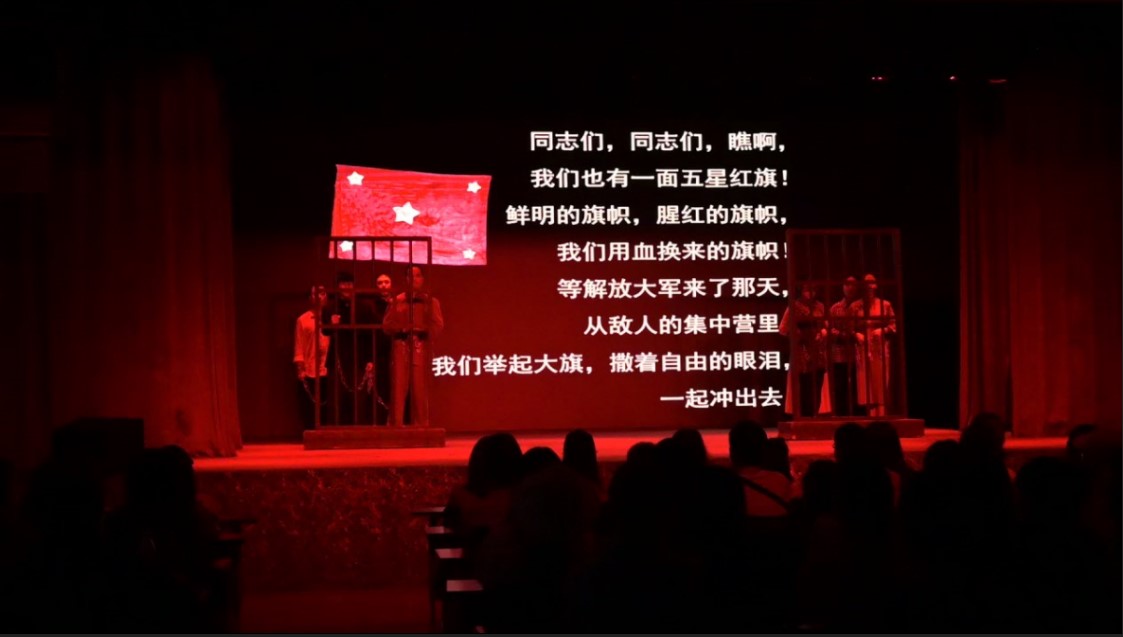 图13. 同学们与演员合唱《红梅赞》和《绣红旗》