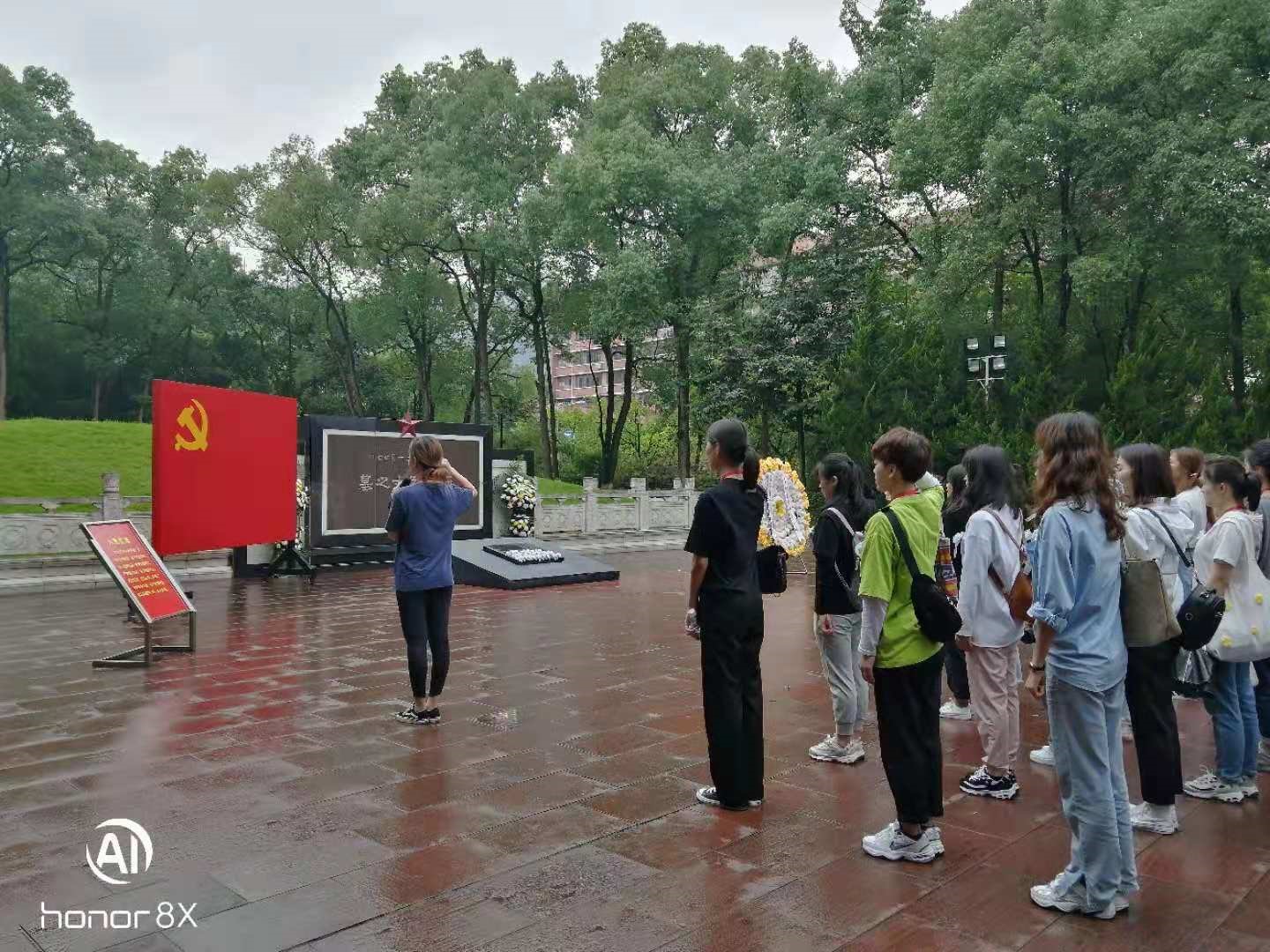在烈士陵园,同学们怀着无比崇敬的心情缅怀了革命先烈,向烈士敬献花篮、行三鞠躬礼、重温入党誓词、敬献小白菊、绕墓一周瞻仰烈士墓园。