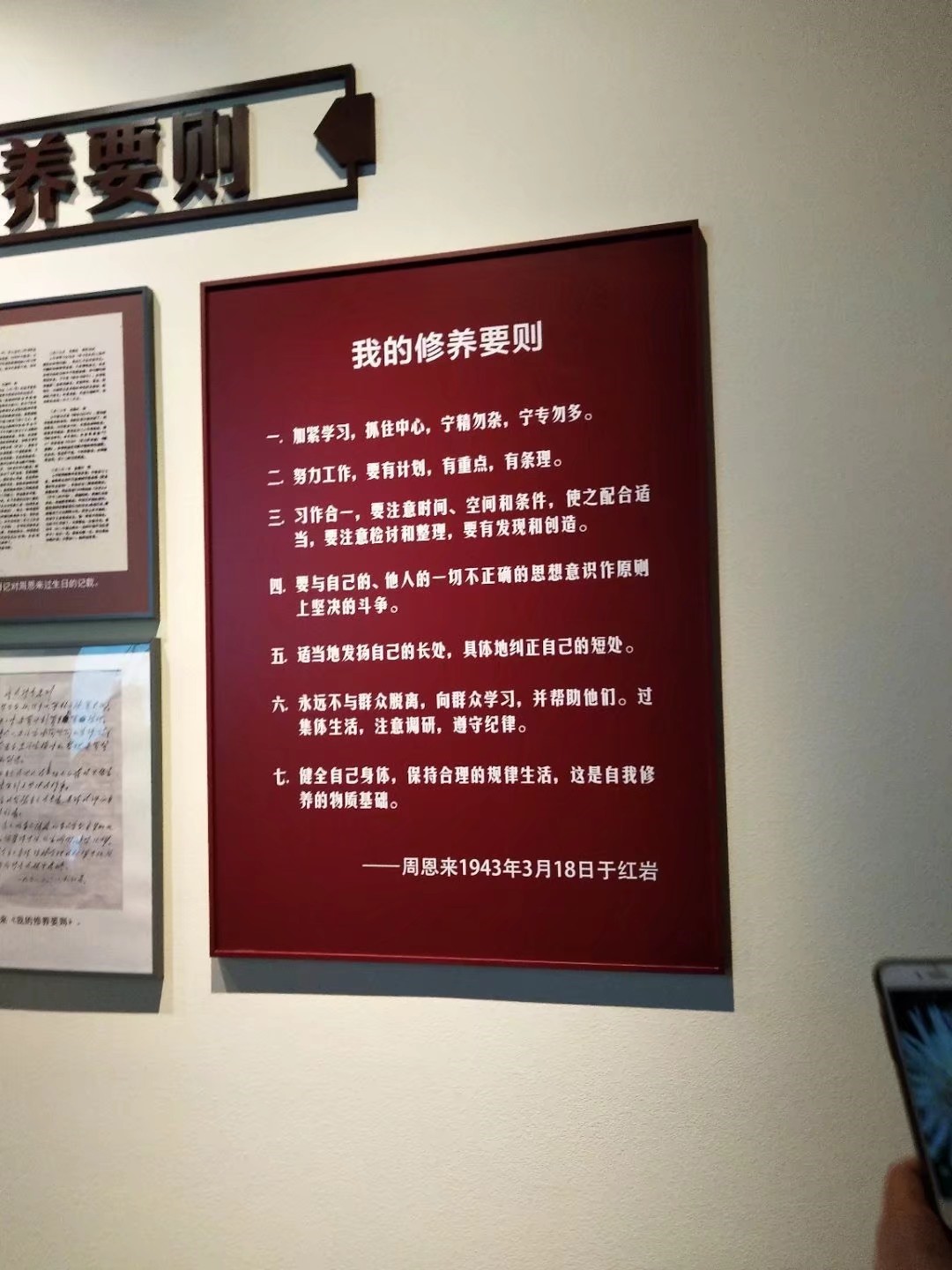 图6.同学们自行参观时拍摄周恩来的《我的修养要则》