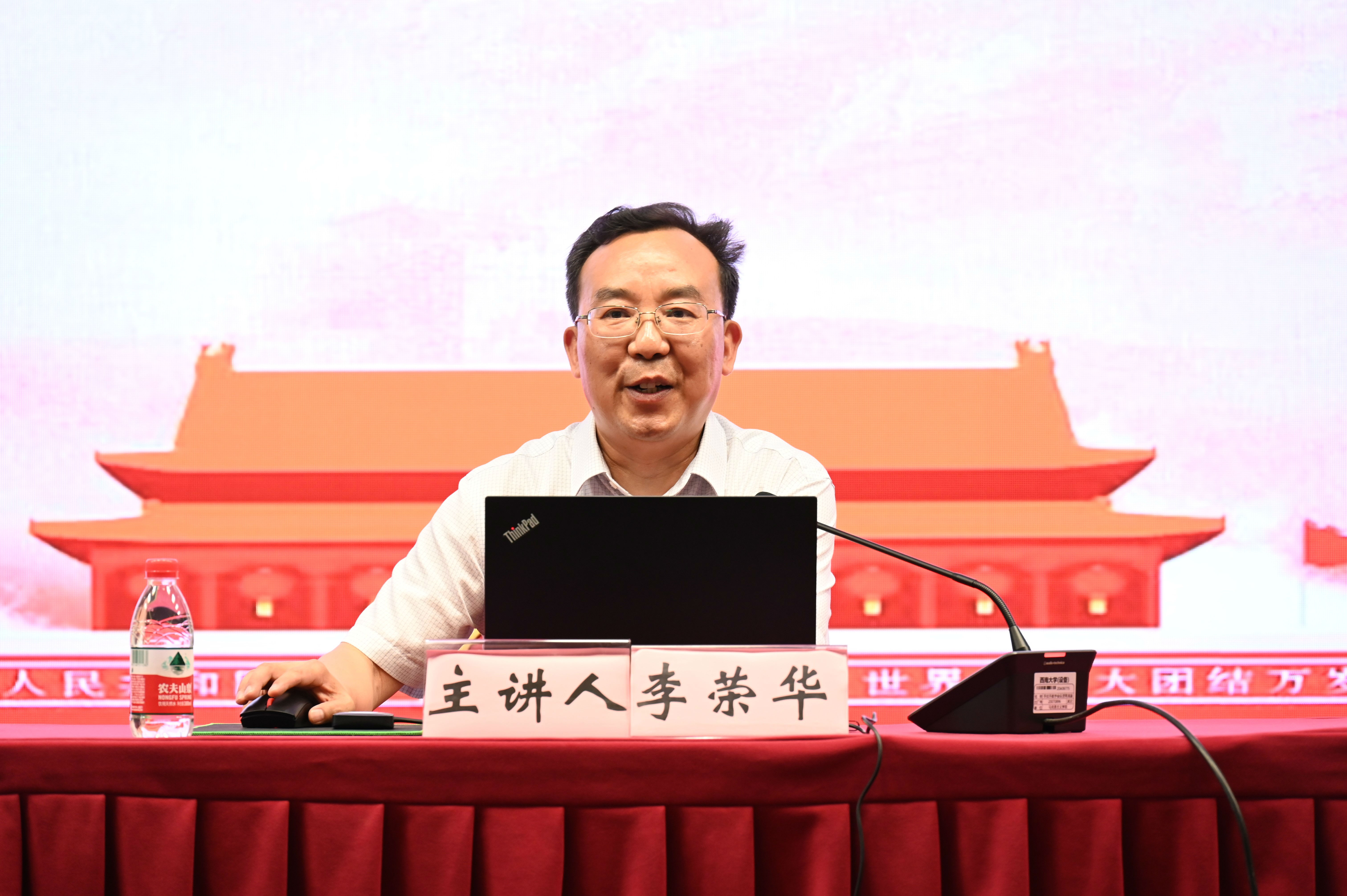 李荣华部长重点从庄严宣告、初心使命、建党精神、以史为鉴,开创未来、祖国统一、寄语青年、号召全党七个方面围绕学习习近平总书记在庆祝中国共产党成立100周年大会上的重要讲话精神开展主题导学。