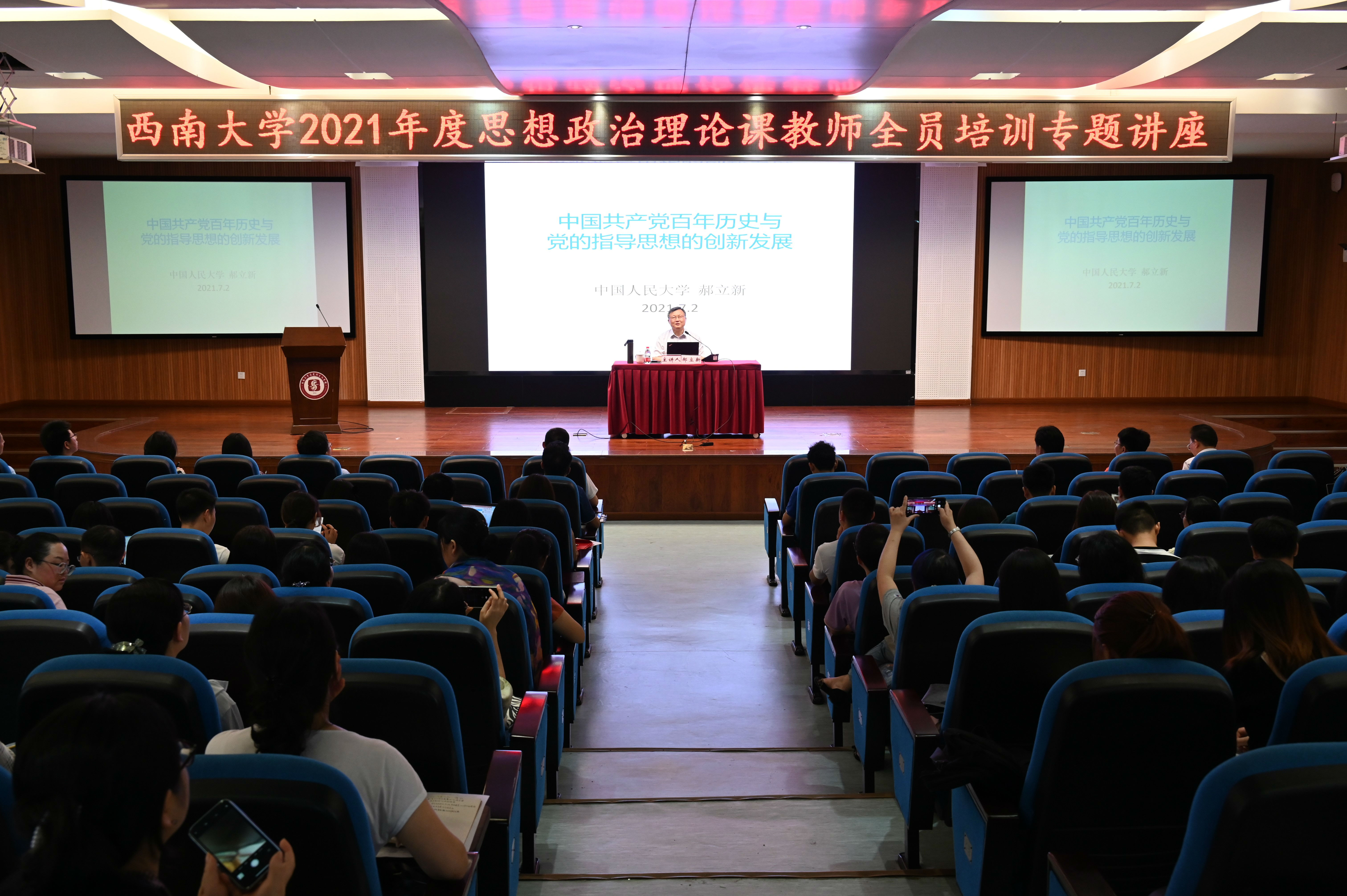 为深入贯彻落实学习习近平总书记在庆祝中国共产党成立100周年大会上的重要讲话精神,同时切实加强学校思政课教师队伍建设,学校举办2021年度思想政治理论课专兼职教师全员培训专题讲座。2021年7月2日下午在点点taptap官方网站505学术报告厅邀请公司党委宣传部部长李荣华做“风雨兼程百年路,不忘初心再出发”主题导学,随后,中国人民大学郝立新教授以“中国共产党百年历史与党的指导思想的创新发展”为题进行了专题讲座。培训由公司党委常务副书记廖晓衡主持,学校全体专兼职思想政治理论课教师参加。