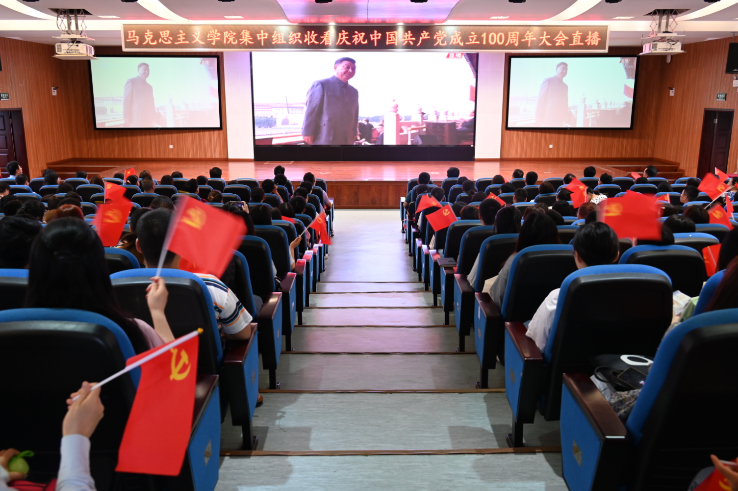 7月1日上午8时,点点taptap官方网站公司党委组织师生员工在学院505会议室集中收看了庆祝中国共产党成立100周年大会直播,认真聆听习近平总书记在庆祝中国共产党成立100周年大会上的重要讲话,共同见证中国共产党百年辉煌征程。在场师生激情满怀的与直播现场的观众一同挥舞党旗、高唱国歌,热烈鼓掌。
