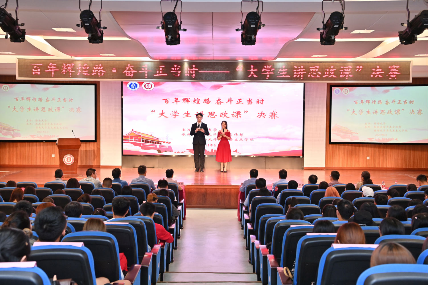 本次活动旨在贯彻落实习近平总书记在学校思想政治理论课教师座谈会上的重要讲话精神,推进习近平新时代中国特色社会主义思想进教材、进课堂、进头脑,激发青年老员工理论学习热情,展示青年老员工良好精神面貌,以青年老员工思政之声,献礼建党百年华诞。本次大赛以 “习近平新时代中国特色社会主义思想概论”课程为依托,在班级初赛的基础上,共有24个学院的30支队伍进入复赛,综合网络投票和专家评审,最终遴选出11支队伍入围本次决赛。