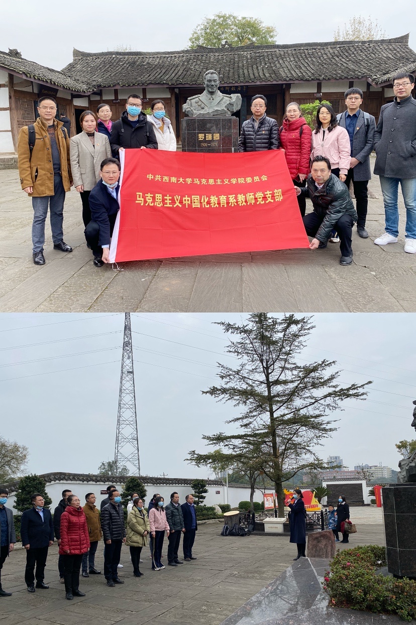 12月11日下午,马中化系党支部先是参观了南充市红色教育基地罗瑞卿故居,深入了解罗瑞卿同志的生平事迹,并举行了严肃认真的缅怀仪式。为此,支部成员产生了深刻的情感共鸣,对罗瑞卿同志赤胆忠心,忘我工作,始终保持旺盛的战斗意志和革命乐观主义精神,把自己的一切献给党,为共产主义事业不懈奋斗一生的英雄精神深受感动和鼓舞。随后,支部参观了张澜纪念馆,支部成员深受张澜先生反对独裁,呼吁民主,坚持抗战的爱国主义精神所感动。