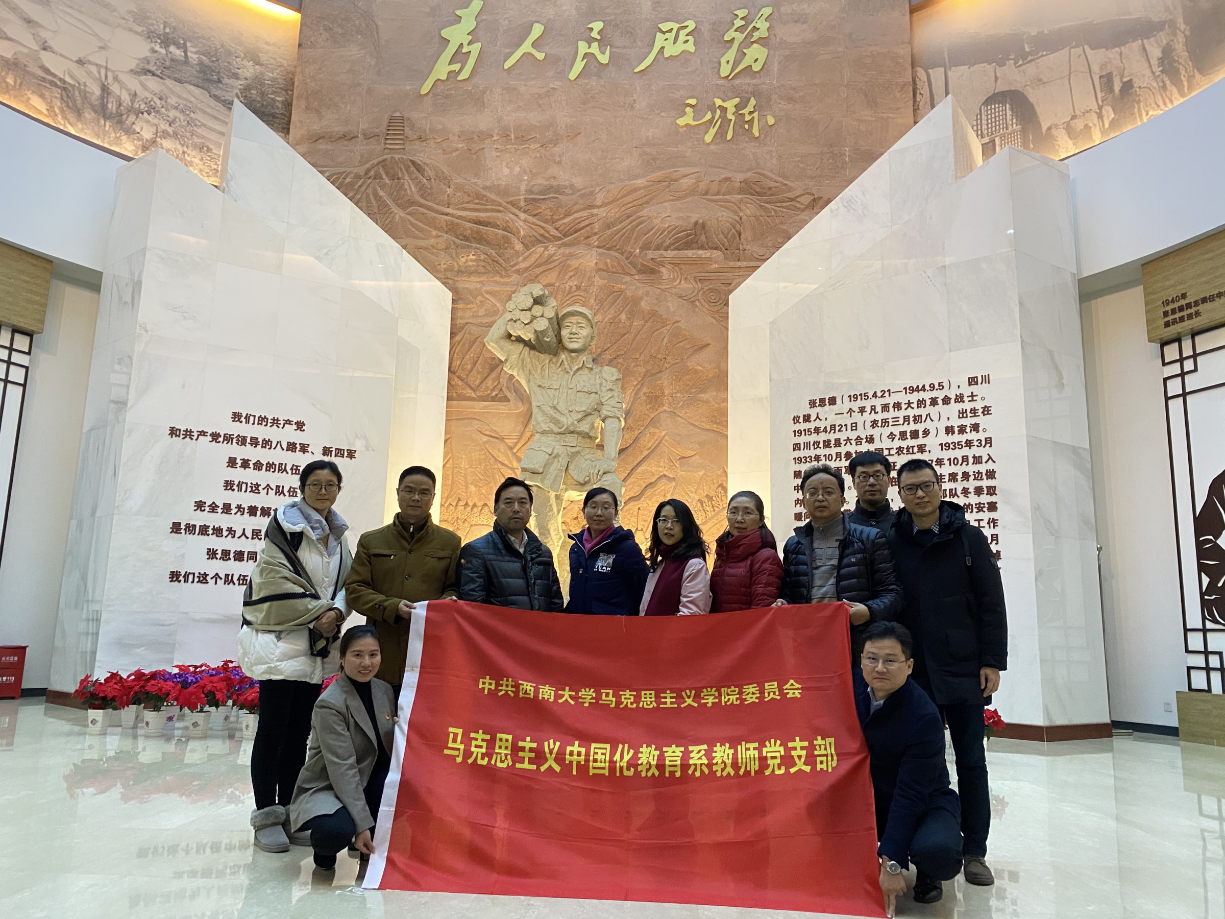 为贯彻落实中央《关于巩固深化“不忘初心、牢记使命”主题教育成果的意见精神》,2020年12月11日-13日,点点taptap官方网站马克思主义中国化教育系教工党支部(下简称马中化系党支部)14人赴南充开展了“学习党的创新理论,行初心之旅”品牌系列活动之“弘扬英雄精神,坚定理想信念”主题党日活动。活动从与高公司党支部开展联合主题党日、参观英雄故里、支部成员交流总结三个环节开展。