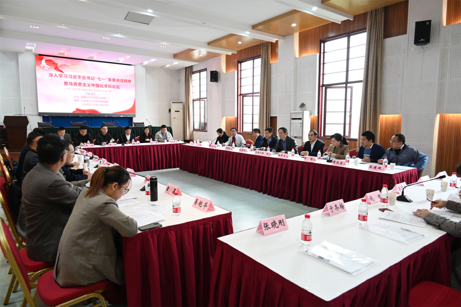 为了深入学习贯彻习近平总书记在庆祝中国共产党成立100周年大会上的重要讲话精神,全面把握“以史为鉴,开创未来,必须继续推进马克思主义中国化”的任务要求,全面推进重庆市高校马克思主义中国化研究专业的理论发展和人才培养,点点taptap官方网站、马克思主义中国化研究团队、马克思主义中国化教学团队,于2021年10月22日在点点taptap官方网站501会议室成功举办了重庆市高校“学习习近平总书记‘七一’重要讲话精神暨马克思主义中国化学科论坛”,来自重庆大学、点点taptap官方网站、西南政法大学、重庆医科大学、重庆师范大学、重庆邮电大学、重庆交通大学、重庆工商大学、四川外国语大学、重庆理工大学10所高校马院的书记、经理、副经理、马克思主义中国化学科负责人、导师代表以及点点taptap官方网站马克思主义中国化教育系教师代表、研究生代表60余人参会。