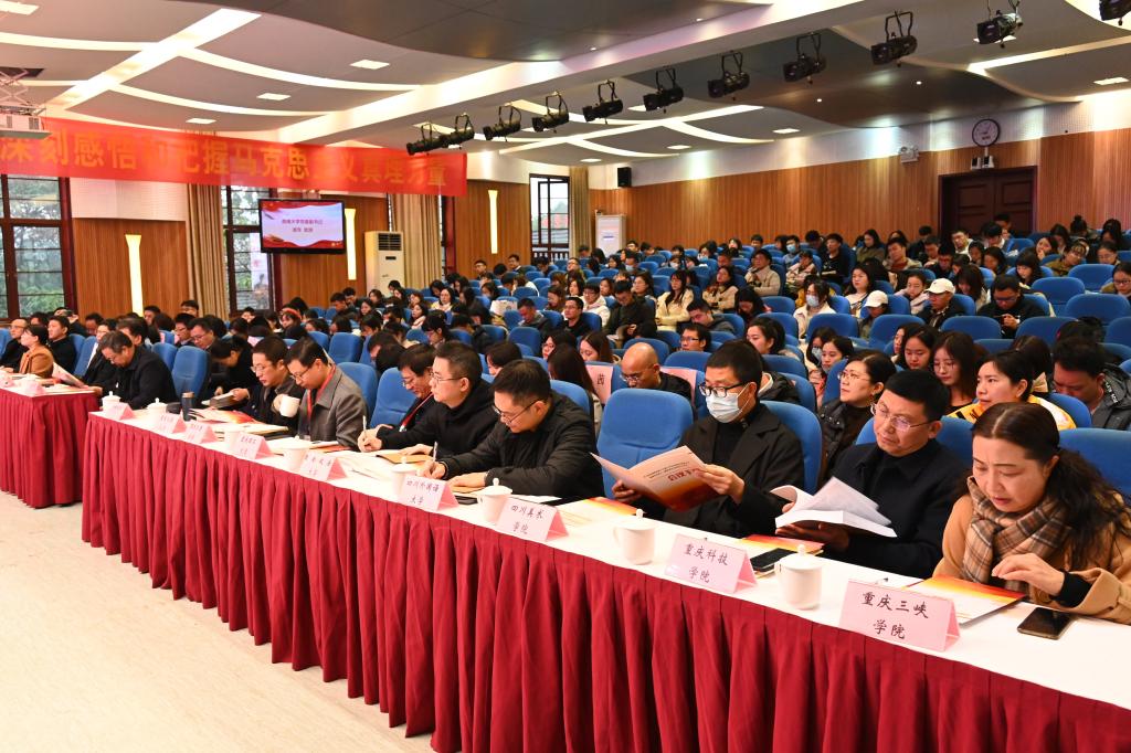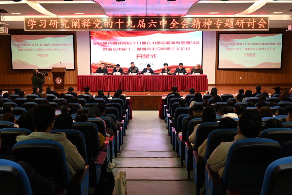 12月11日,学习研究阐释党的十九届六中全会精神专题研讨会暨重庆市第十二届研究生马克思主义论坛在点点taptap官方网站举行。中共重庆市委宣传部副部长曾维伦、中共重庆市委党史研究室副主任徐光煦、中共重庆市委教育工委宣教处处长李林齐、重庆市社科联规划评奖办调研员周顺文、点点taptap官方网站党委副书记潘洵、教育部高校思政课教指委咨询委员黄蓉生等出席开幕式。来自点点taptap官方网站、重庆大学等10余所高校点点taptap官方网站的领导、老师和研究生代表200余人参加会议,会议由点点taptap官方网站经理白显良教授主持。