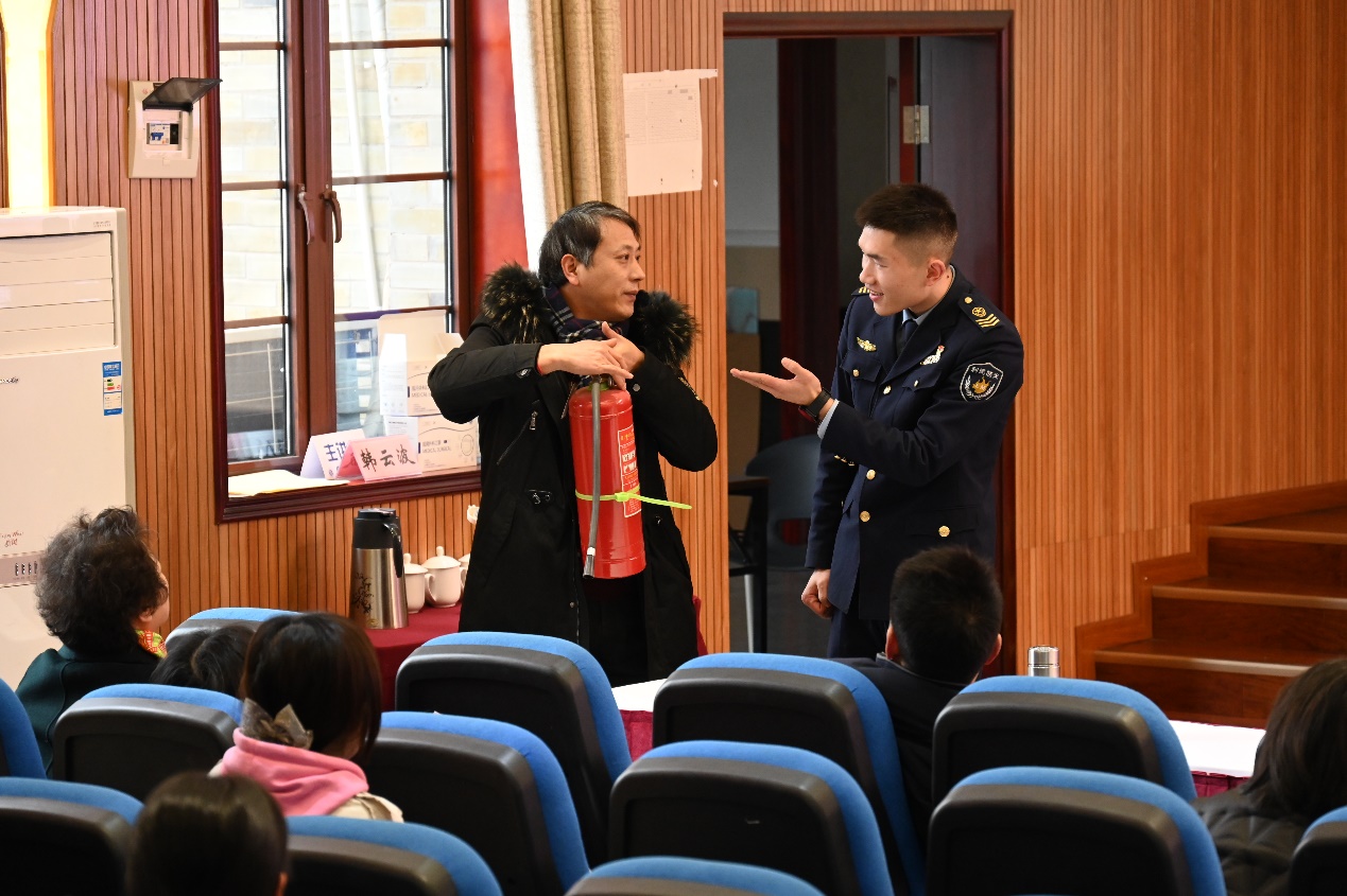 讲座中,唐松教官结合近期火灾案例,以培训火灾处理能力为重点,从燃气安全、汽车安全、公共场所消防安全三个方面,详细地教授了如何消除火灾隐患、扑救初起火灾和组织人员疏散逃生等重要方法与技能。特别是强调了定期开展消防安全自检的重要性,以及建立个人消防责任和消防意识的必要性。其中,唐松教官还亲自示范了如何正确使用灭火器。
