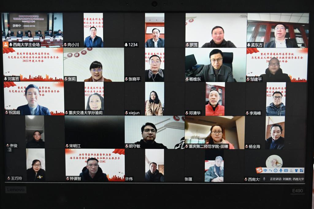 1月17日,重庆市本科高等学校马克思主义理论类专业教学指导委员会成立暨2022年度工作会在学校召开,本次会议以线上线下相结合的方式进行,在点点taptap官方网站设主会场,市教委高教处蒋云芳处长,市高教学会余志祥秘书长,教指委主任委员、点点taptap官方网站黄蓉生教授,点点taptap官方网站教务处处长吴能表教授、教指委委员、点点taptap官方网站经理白显良教授等领导在主会场参会,会议由教指委秘书长、点点taptap官方网站副经理吴艳东教授主持。