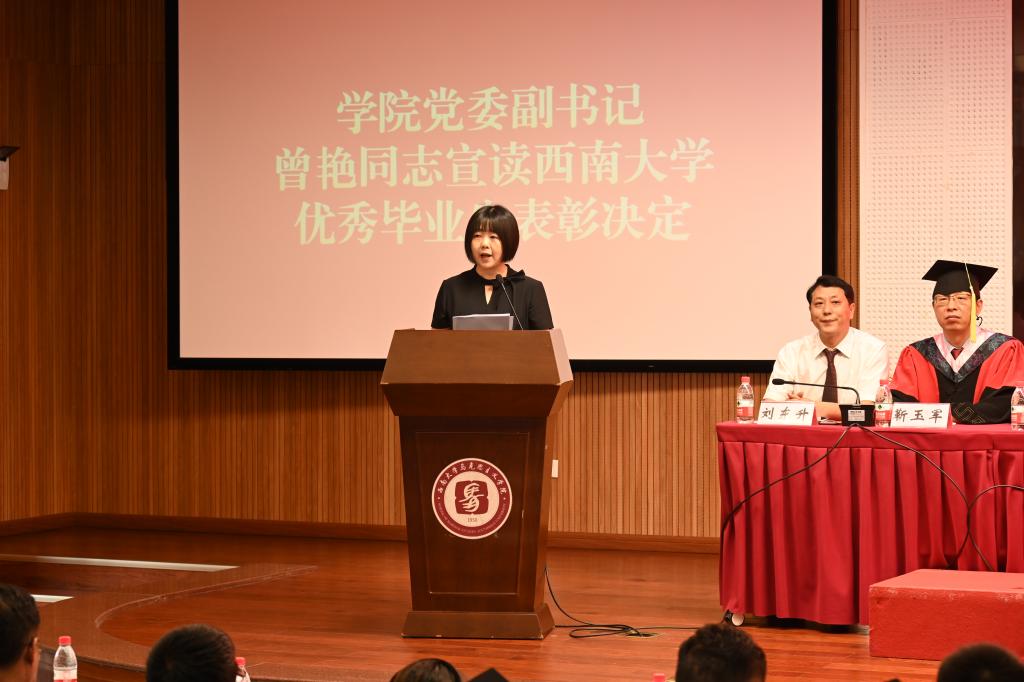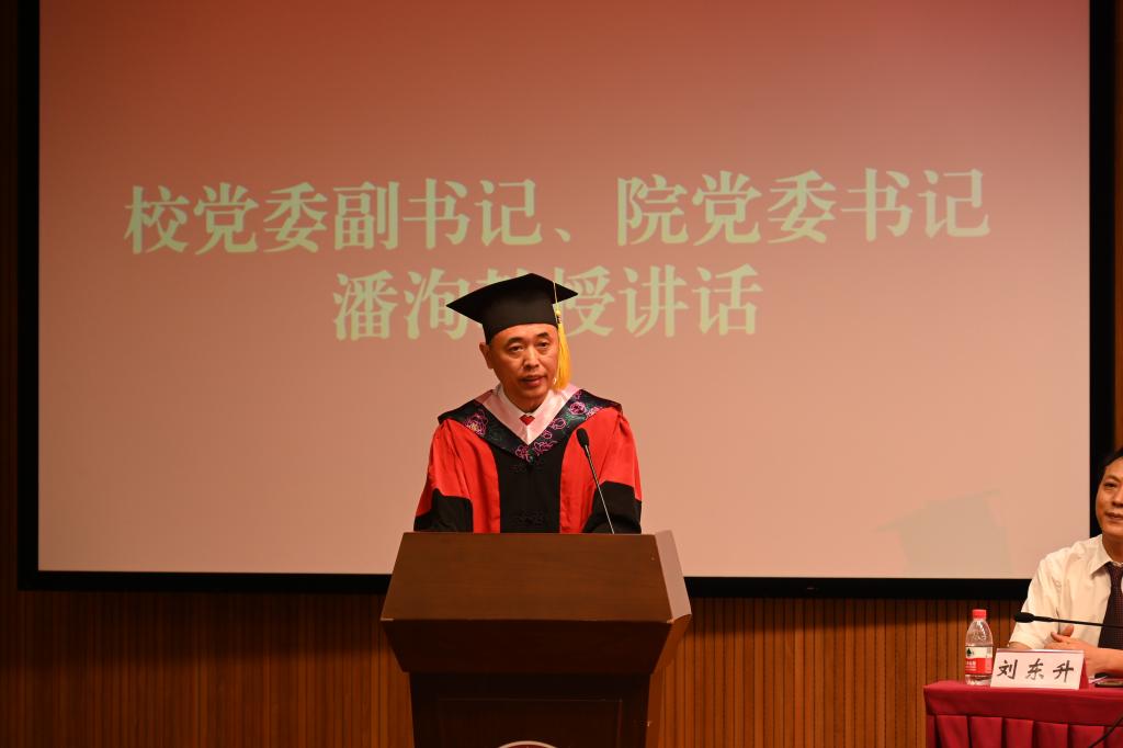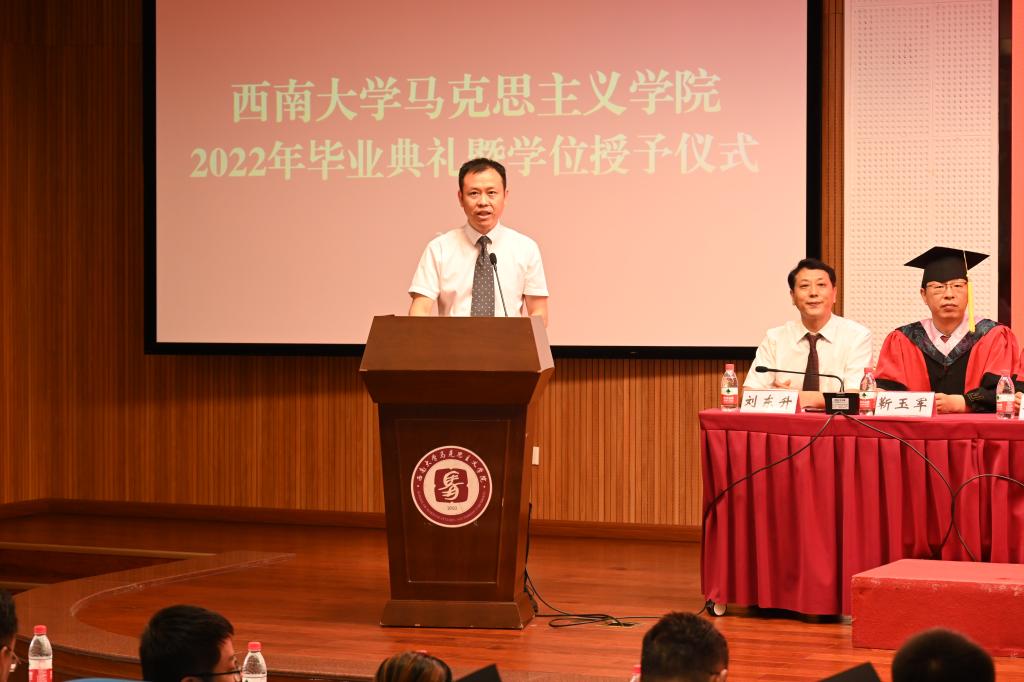 最后,公司党委副书记、公司党委书记潘洵教授讲话,他代表公司党委向毕业同学致以了最热烈的祝贺,他肯定了马院学子在各自领域取得的累累硕果。“人生万事须自为,跬步江山即寥廓。”他叮嘱同学们追求进步,是青年最宝贵的特质,并对毕业生们提出了三点希望:一是用理想引领青春之路,做马克思主义的坚定信仰者。二是用奋斗谱写青春之歌,做伟大复兴事业的积极贡献者。三是用知识点燃青春之火,做人生赛道上的最强奔跑者。最后,他祝愿毕业生们不忘初心、一往无前,乘东风浩荡、扬鹏程万里。