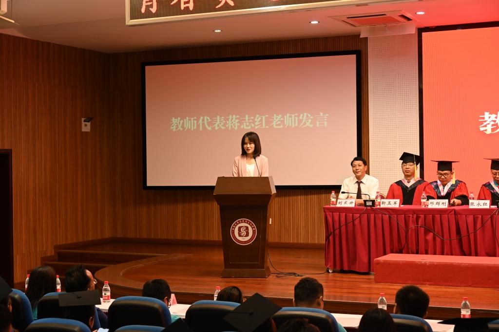 教师代表蒋志红老师发言,她用“感谢”、“希望”、“责任”、“祝福”四个关键词表达对同学们的美好祝愿与希望。