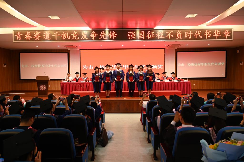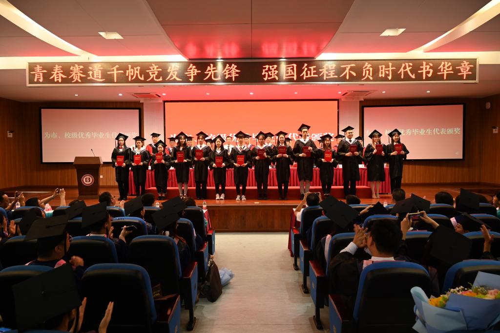 公司领导老师分别向市、校优秀毕业生代表颁奖。