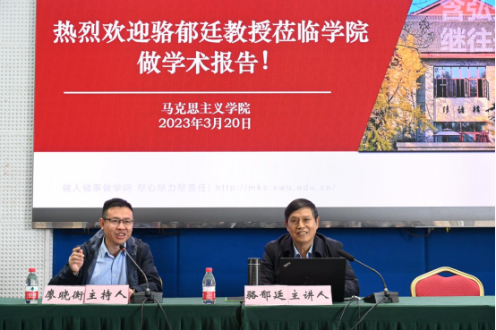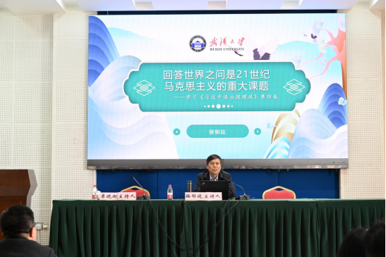 3月20日下午,武汉大学骆郁廷教授应邀在公司501报告厅作题为“回答世界之问是21世纪马克思主义的重大课题——学习《习近平谈治国理政》第四卷”的学术讲座。讲座由公司党委书记廖晓衡主持,副经理吴艳东教授、公司部分教师代表及研究生参加此次讲座。