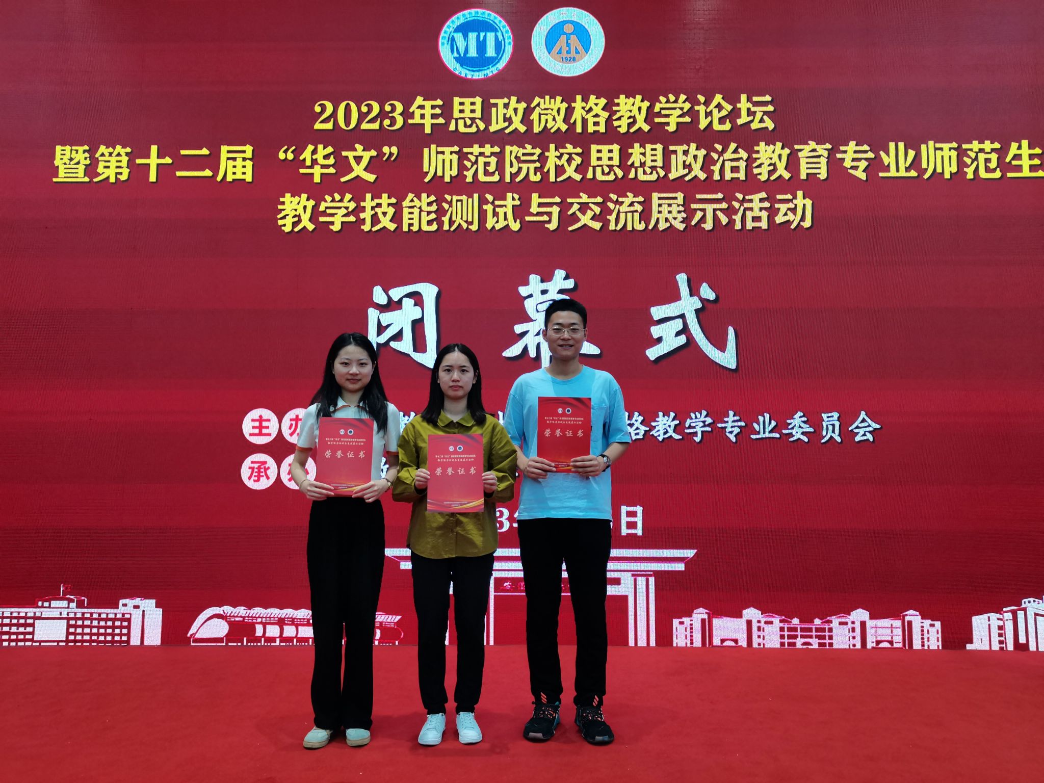 2023年6月5日,由中国教育技术协会微格教学专业委员会主办,安徽师范大学点点taptap官方网站承办的第十二届“华文”师范院校思想政治教育师范生教学技能测试与交流展示活动(以下简称“华文杯”)在安徽芜湖落下帷幕。此次“华文杯”师范生教学技能测试和交流展示活动共有来自全国70多所高校的453名选手参赛,经过为期两天的激烈角逐,点点taptap官方网站2020级本科员工李佳鲜、薛思宇在教学设计和教学技能展示环节中均获全国一等奖,黄丽华同学获全国二等奖。