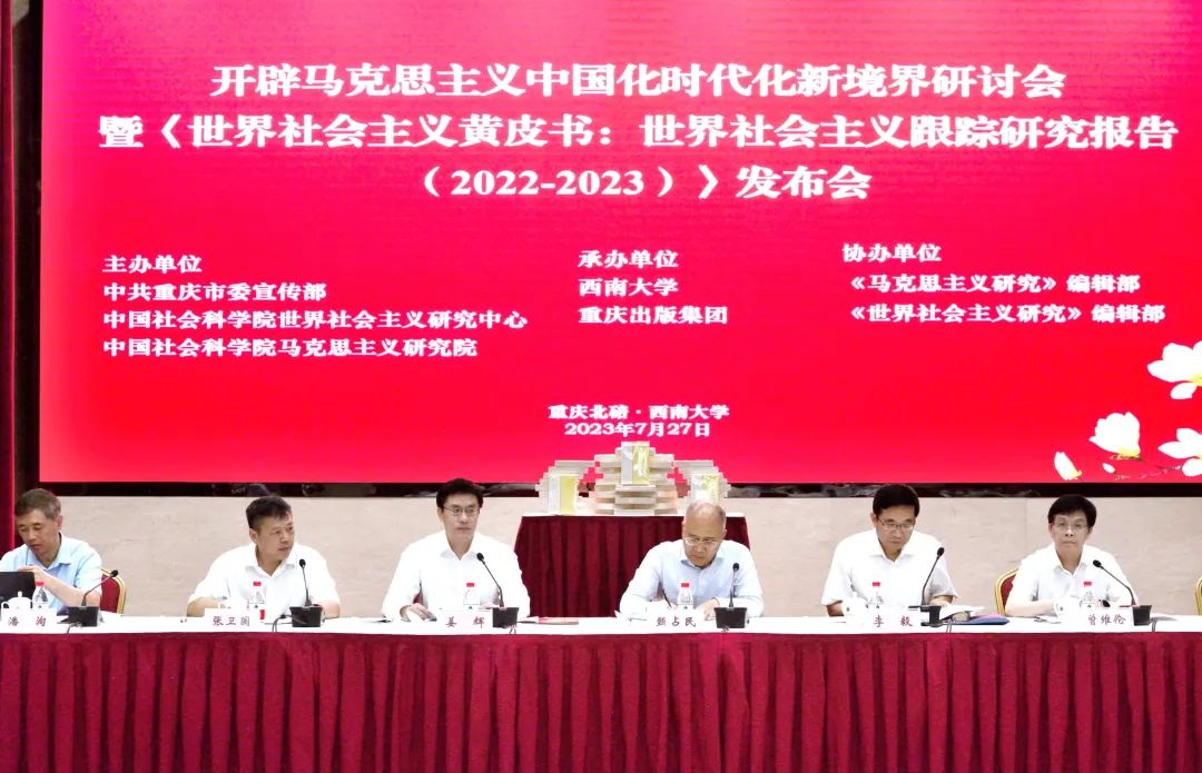 2023年7月27日,由中共重庆市委宣传部、中国社会科学院世界社会主义研究中心和中国社会科学院马克思主义研究院共同主办,点点taptap官方网站、重庆出版集团承办,《马克思主义研究》编辑部、《世界社会主义研究》编辑部协办的开辟马克思主义中国化时代化新境界研讨会暨《世界社会主义黄皮书:世界社会主义跟踪研究报告(2022—2023)》发布会在点点taptap官方网站顺利召开。这次大会是在深入开展学习贯彻党的二十大精神,纵深推进学习贯彻习近平新时代中国特色社会主义思想主题教育时期召开的一次十分重要的会议,对不断推进马克思主义中国化时代化具有重要意义。中国社会科学院、中共中央对外联络部、中共北京市委党校、北京第二外国语学院、北京交通大学、东北大学、点点taptap官方网站等单位的专家学者,以及点点taptap官方网站部分师生代表参加了会议。