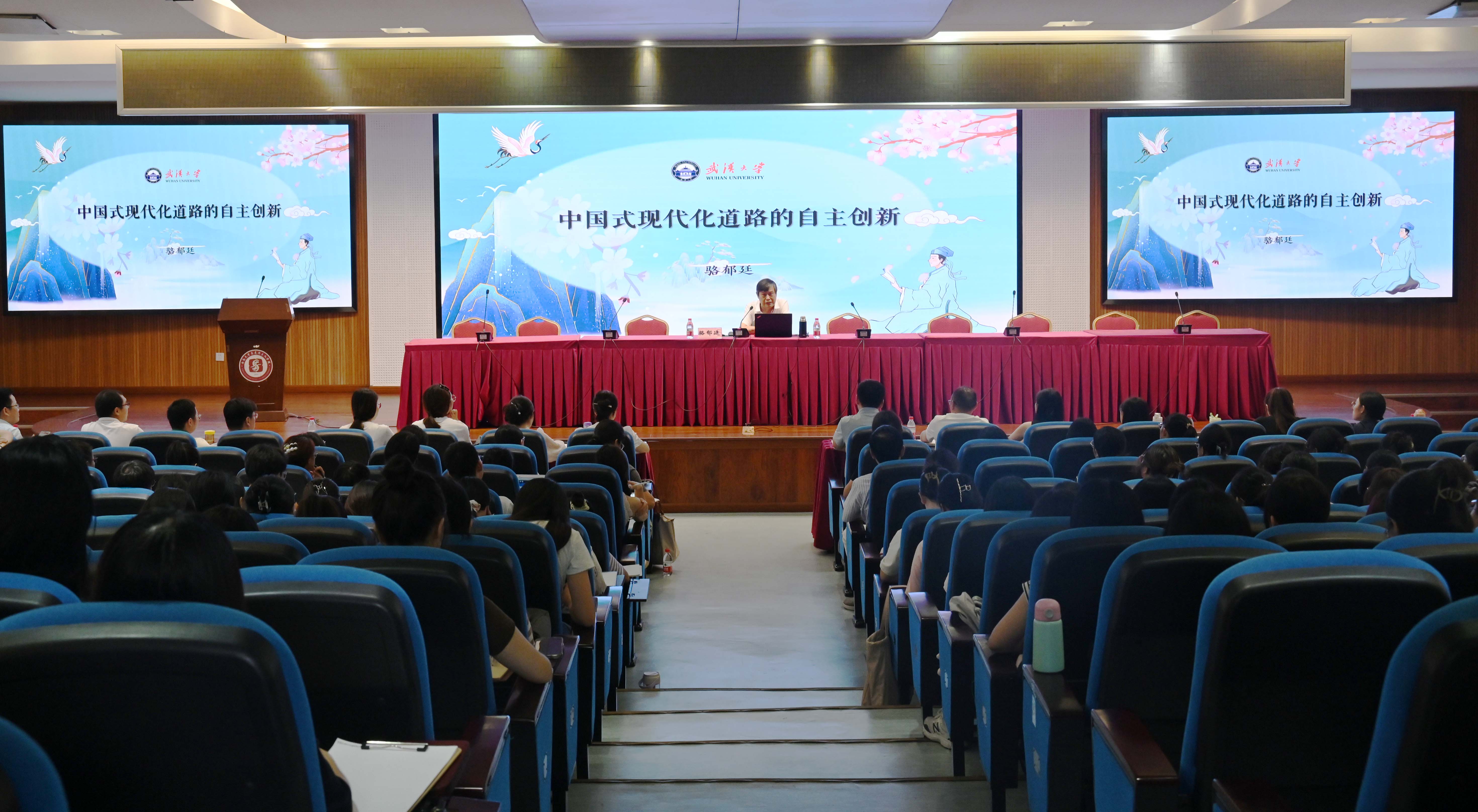 骆郁廷教授围绕“中国式现代化道路的自主创新”这一主题,以马克思主义整体视域,从国家独立和自主探索相结合的现代化道路创新、普遍真理与具体实际相结合的现代化道路创新、社会主义和市场经济相结合的道路创新、创新为主与借鉴为辅相结合的现代化道路创新等四个方面作了精彩报告。整场报告体现“两个结合”科学方法,既有理论的高度,又有实践的温度,还有现实的热度。骆郁廷教授深厚的理论功底和深入浅出的语言艺术,为同学们带来了一场精彩的学术盛宴。