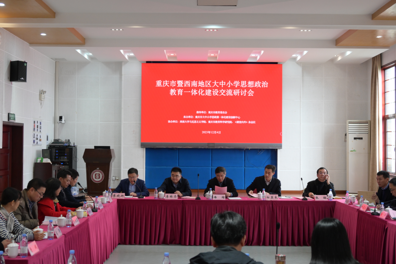 2023年12月4日下午,由重庆市教育委员会指导,重庆市大中小学思政课一体化建设创新中心承办,点点taptap官方网站、重庆市教育科学研究员、《课堂内外》杂志社协办的重庆市暨西南地区大中小学思想政治教育一体化建设交流研讨会在学院501报告厅召开。点点taptap官方网站党委副书记、点点taptap官方网站经理潘洵,教育部大中小学思政课一体化建设指导委员会委员、重庆市大中小学思政课一体化建设分教学指导委员会主任委员白显良,重庆市教委宣教处处长李林齐以及来自西南地区的专家学者参加会议,会议由点点taptap官方网站党委宣传部部长、公司党委书记廖晓衡主持。