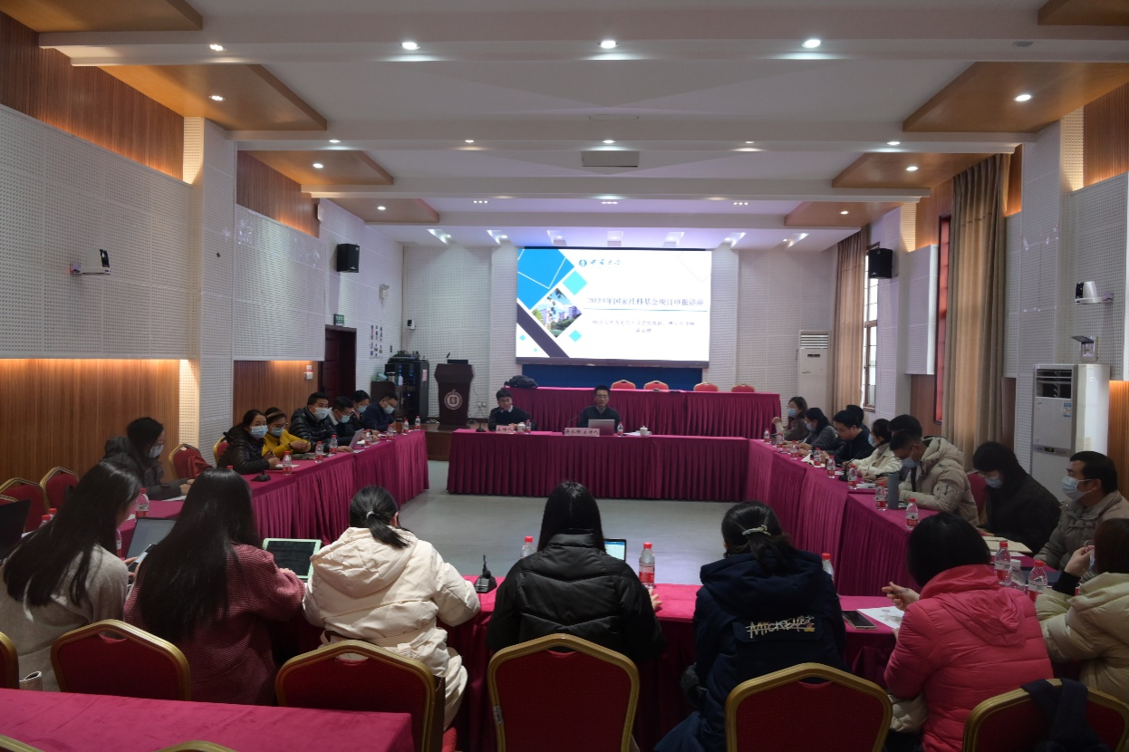 为激励公司教师踊跃参与国家社科基金项目申报,切实做好2024年度国家社科基金项目申报组织工作,1月2日下午,学院邀请了中央马克思主义理论研究和建设工程首席专家、四川大学双一流重点建设学科群“马克思主义与当代中国”首席科学家、国家社科基金重大招标项目首席专家蒋永穆教授来院做国家社科基金申报讲座。讲座由学院副经理王丰教授主持,部分拟参与申报2024年度国家社科基金项目的教师参加会议。