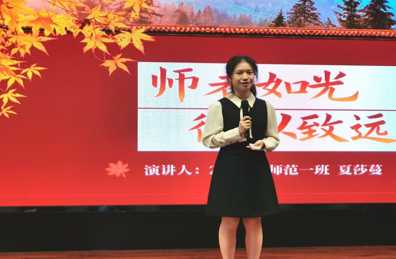 最终,在本次“时代新人培育提质行动——躬耕教坛,强国有我”主题演讲活动中,钟若楠同学荣获一等奖,史欣倩、李溪同学荣获二等奖,龚润熙、江林颖、梁诗涵同学荣获三等奖,胡翰文、谢荧荧、蒋佳欣、夏莎蔓、叶子瑄同学荣获优胜奖。