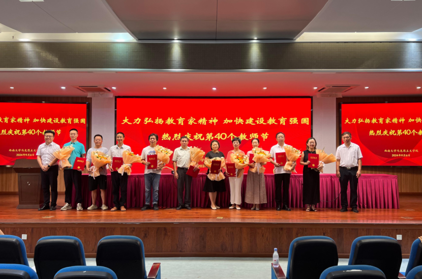 公司党委副书记、学院经理潘洵宣读了表彰名单,并向获奖者表示热烈祝贺。随后,与公司党委书记吴文杰一起,为2023—2024学年度省部级以上荣誉称号和2022—2024学年度校级荣誉称号的获得者们进行了颁奖。