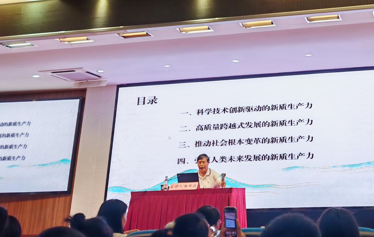 9月28日上午,武汉大学骆郁廷教授应邀在505报告厅为学院师生带来了一场主题为“唯物史观视域下的新质生产力”的学术报告。报告由学院副经理王丰教授主持,学院部分教师及研究生、本科生聆听了此次报告。