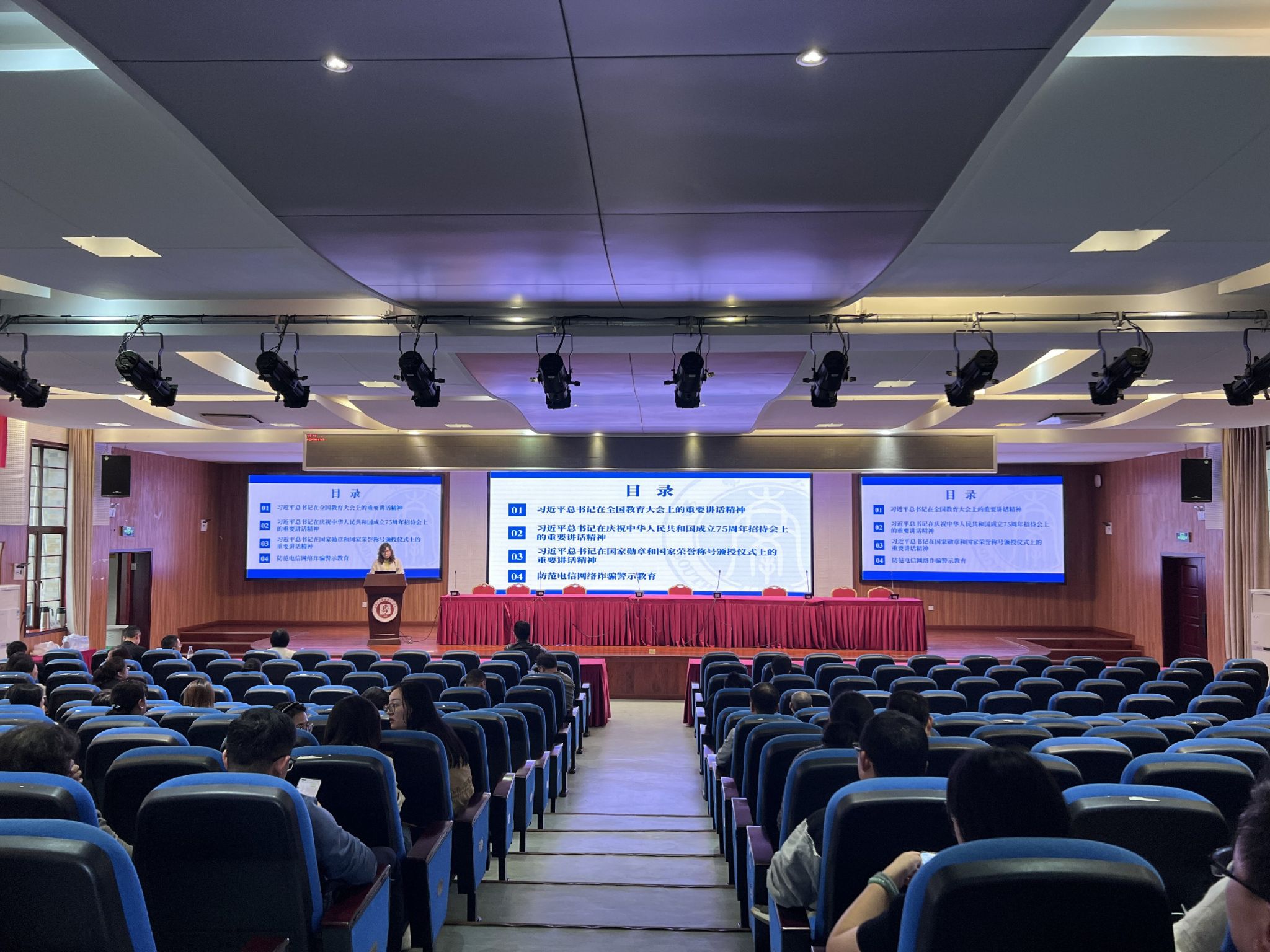 2024年10月11日下午,公司在505报告厅开展2024年第八次教职工政治理论学习,集中学习了习近平总书记在全国教育大会上的重要讲话精神、习近平总书记在庆祝中华人民共和国成立75周年招待会上的重要讲话精神、习近平总书记在国家勋章和国家荣誉称号颁授仪式上的重要讲话精神和防范电信网络诈骗警示教育。公司全体教职工参加,会议由公司党委书记吴文杰主持,本次教职工政治理论学习由马克思主义基本原理教育系教师党支部书记邓春芝领学。