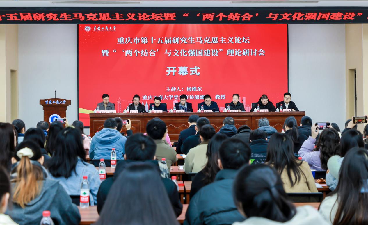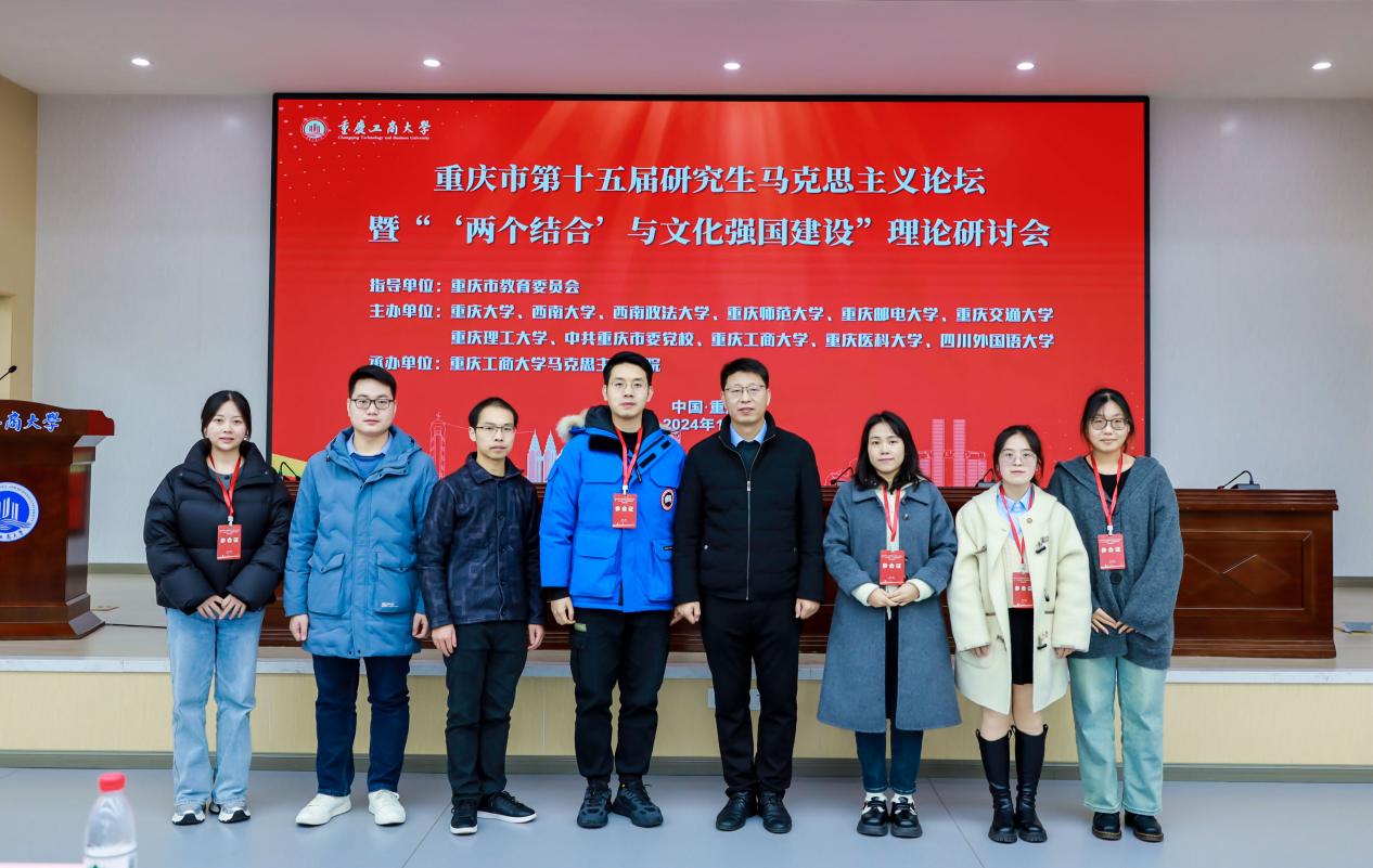 2024年12月15日,重庆市第十五届研究生马克思主义论坛暨“‘两个结合’与文化强国建设”理论研讨会在重庆工商大学南岸校区明德楼1019天健报告厅举行。本次论坛由重庆市教育委员会指导,重庆大学、点点taptap官方网站、西南政法大学、重庆师范大学、重庆邮电大学、重庆交通大学、重庆理工大学、中共重庆市委党校、重庆工商大学、重庆医科大学、四川外国语大学等11所高校共同主办,重庆工商大学承办。公司党委书记吴文杰、副经理靳玉军、研究生辅导员黄林及研究生获奖代表霍广涛等6名同学应邀参会。