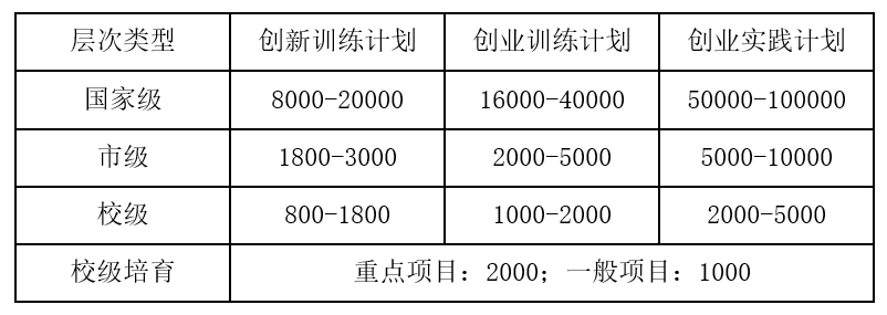 老员工创新创业训练计划项目经费资助标准(单位:元)