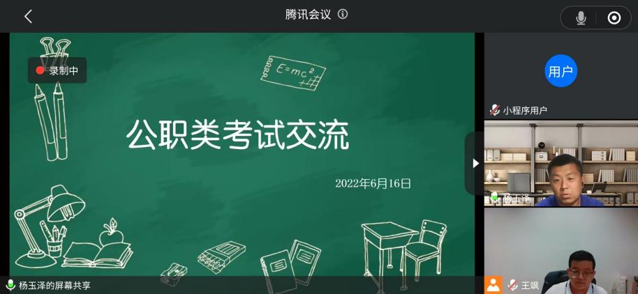 杨玉泽同学着重介绍了公职类考试的相关情况,就个人备考计划及注意事项进行了分享。首先,他建议大家按照国考的节奏,以国考内容为基础并结合个别省市的特色题型安排复习计划。其次,他强调了备考前期需要注意的三点方面:一是岗位选择方面,根据自身条件挑选岗位,增强竞争优势,增强岗位适配度;二是心态准备方面,明确自己想要从事的岗位,高度重视并努力准备;三是时间规划方面,协调毕业论文写作、科研安排和备考计划三者的时间,尽早准备不要拖延。