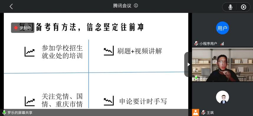“复习备考有方法,坚定信念向前冲”。罗乐同学就重庆定向选调的报考条件、选拔流程和备考方法进行了分享。首先,他详细解读了参加选调的条件,提醒师弟师妹抓紧时间,努力在政治面貌、员工工作等方面达到要求。其次,他具体介绍了重庆定向选调的笔试和面试环节,分享了他的备考经验。最后,他特别强调大家应注重在日常学习和实践的锻炼提升,在日常学习中提高对时事政治的敏感度,锻炼综合分析能力、语言表达能力、组织协调能力,从而更好地应对笔试和面试。
