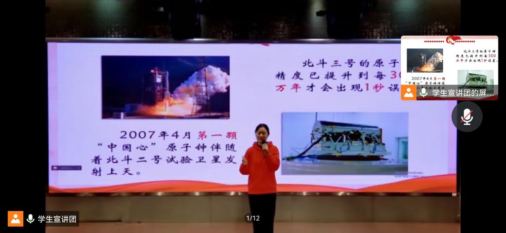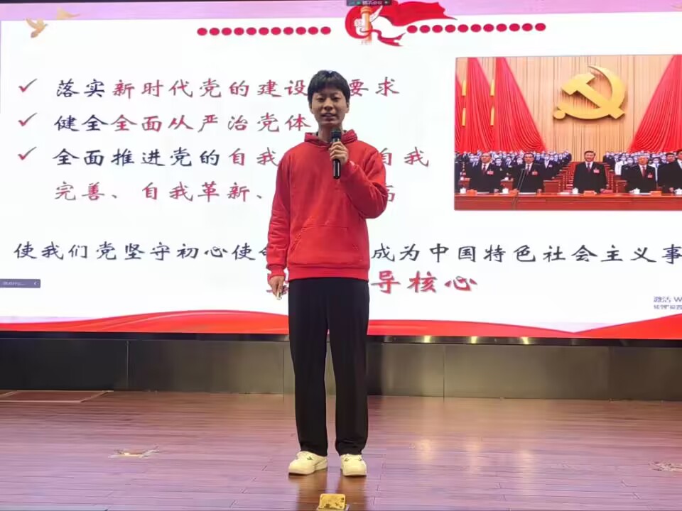 刘东升副书记发言完毕后,员工宣讲团展开党的二十大精神示范宣讲。宣讲员刘钰煊、王冰洁以《“数”读二十大,奋斗新征程》为开篇总体介绍党的二十大精神。而后,宣讲员们从四个关键词入手系统宣讲党的二十大主要内容。宣讲员杨怡宣讲科教兴国篇《以科教兴国唱响人才之歌》,以我国北斗事业的发展点明科技、教育、人才三者结合迸发的强大合力;宣讲员杨雨鑫宣讲从严治党篇《十年淬火,清正见行》,讲述了我们党坚持刀刃向内的自我革命历程;宣讲员吴宇航宣讲文化自信自强篇《观文化昌盛,延传承火炬》,展现了我国正积极推动中华文化守正创新、走向世界;宣讲员杨安琪宣讲绿色发展篇《以绿色低碳之涓滴,绘壮美磅礴之山河》,以塞罕坝荒漠变绿洲的奇迹故事展现绿色发展的重要意义。