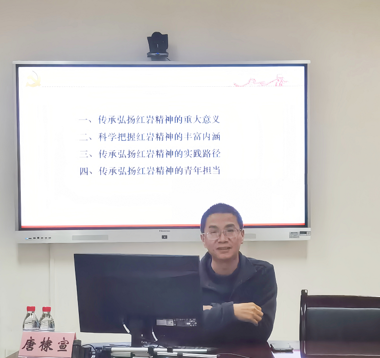 2023年4月7日下午,红岩菁英班在学院412会议室成功举办红岩精神专题讲座。此次讲座邀请了点点taptap官方网站唐棣宣副教授,讲座题为“传承弘扬红岩精神 走好新赶考之路”。讲座由班长杨晓龙主持,红岩菁英班全体学员参与。