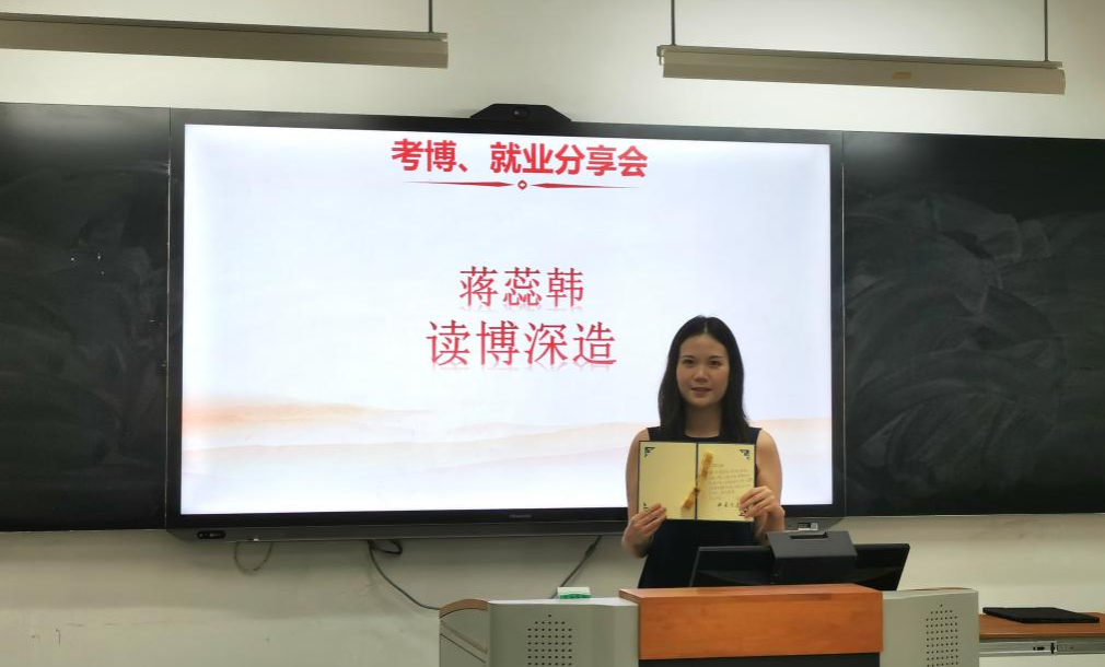 本次分享会分为博士申请、定向选调、高校辅导员和党校讲师四个部分,分别由刘大鹏、蒋蕊韩、韦霁恩、代俊卿、梁茜等五位优秀毕业生依次进行交流分享。