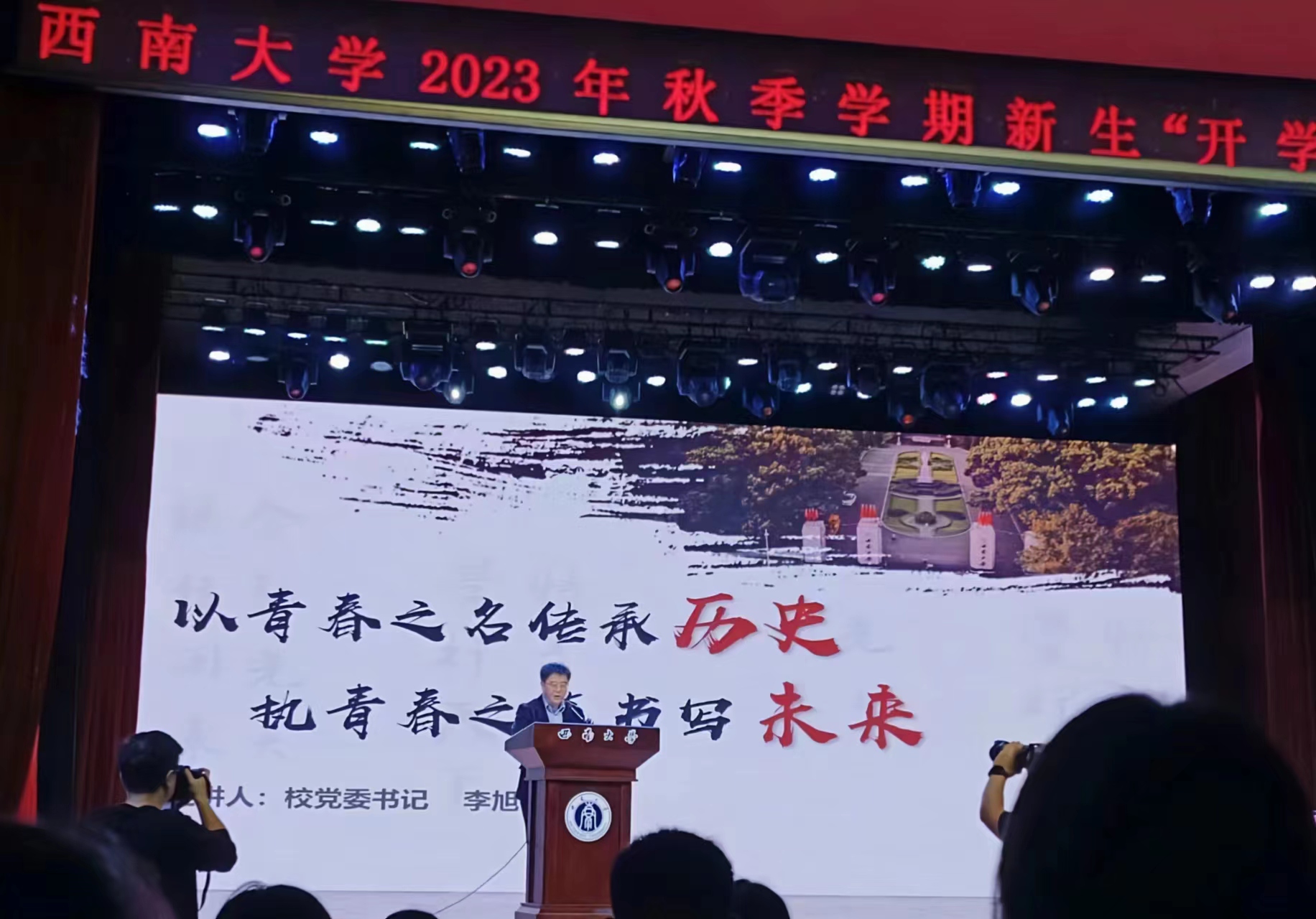 9月26日下午,2023级全体新生分别在大礼堂、学院505报告厅共上秋季学期新生“开学第一课”。课上,斩获成都大运会跆拳道男子80公斤级冠军的体育学院2020级本科生张凯,向学弟学妹们分享了自身奋斗经历。公司党委书记李旭锋教授深情寄语2023级新同学“以青春之名传承历史,执青春之笔书写未来”,希望同学们保持独立思考、瞄准学科前沿、注重实践积累、深深扎根脚下这片土地,自觉传承文化之魂脉,继续发扬精神之力量!