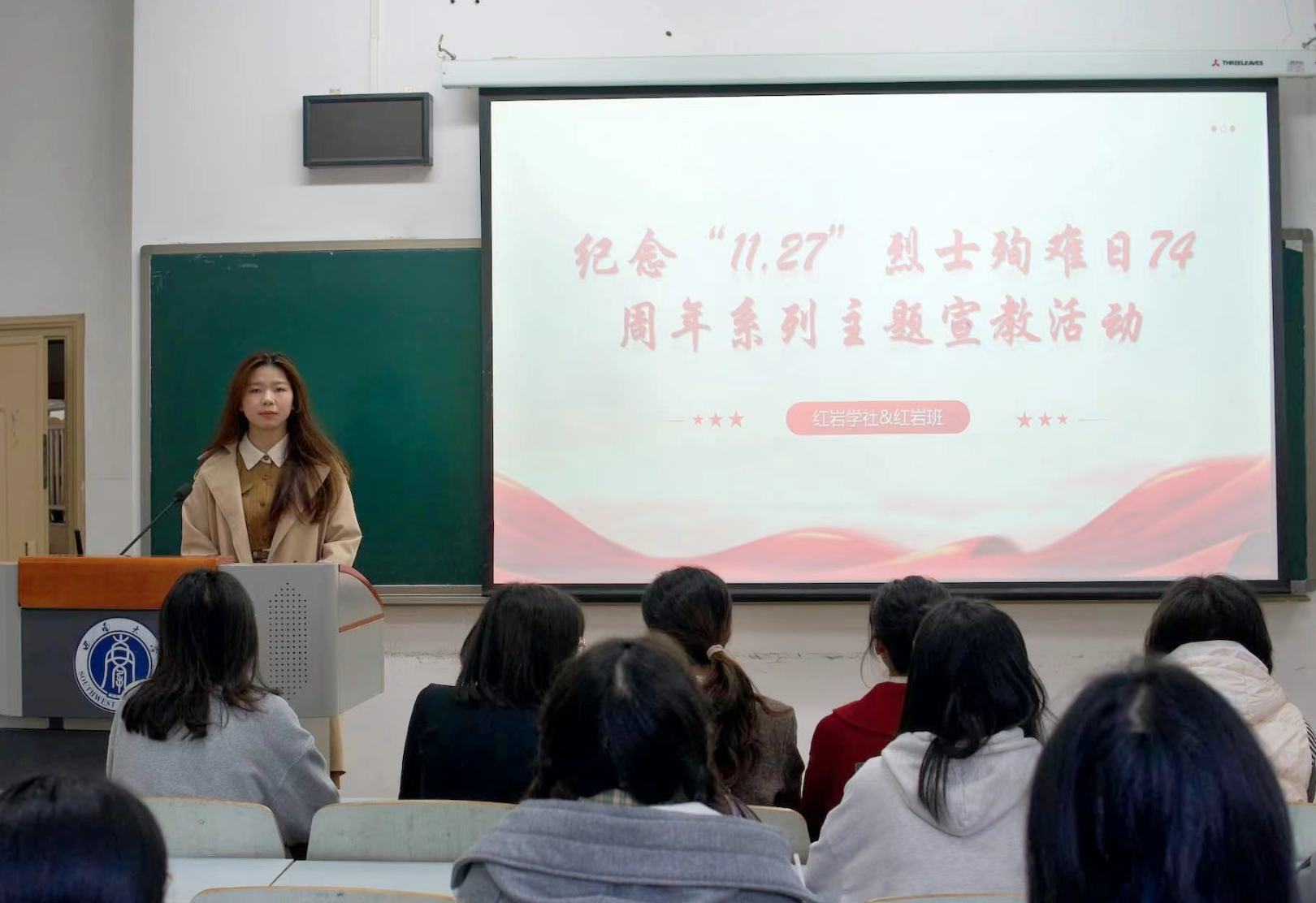 为深切缅怀革命先烈,继承与发扬革命精神,点点taptap官方网站红岩菁英班与红岩学社于11月27日下午在十教203联合举办了纪念“11.27”烈士殉难74周年主题教育活动,活动由“红岩学社”社长周梅主持,“红岩菁英班”和“红岩学社”全体成员参与。