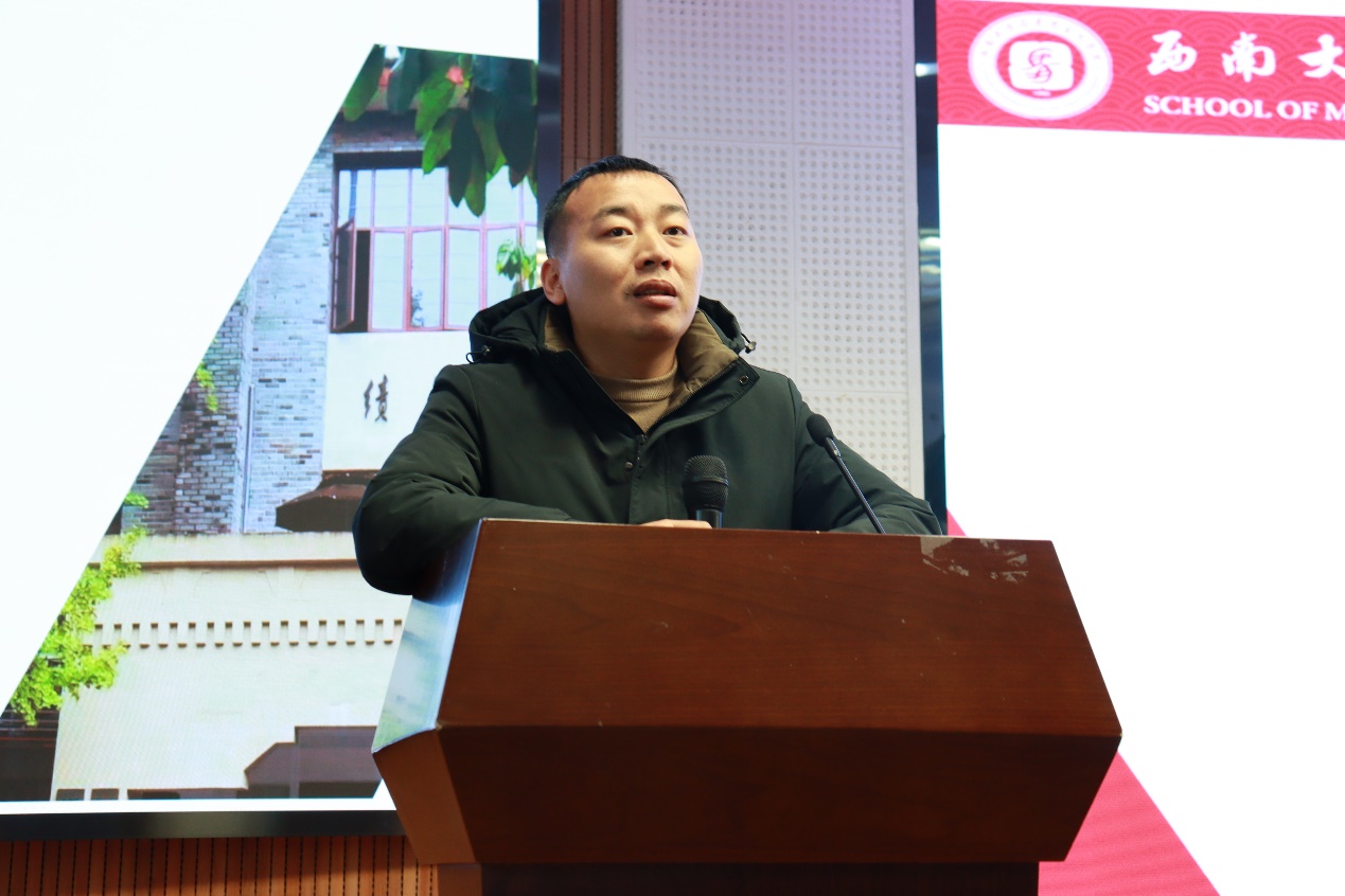 接着,研究生教学办公室主任兼教学秘书谢忱就教育部“后备计划”和实习安排进行了细致说明。就实习小组的成员安排、指导老师的分配情况进行详细介绍,让同学知悉了实习队伍构成和实践地点等信息,为后续实习工作的顺利开展奠定基础。
