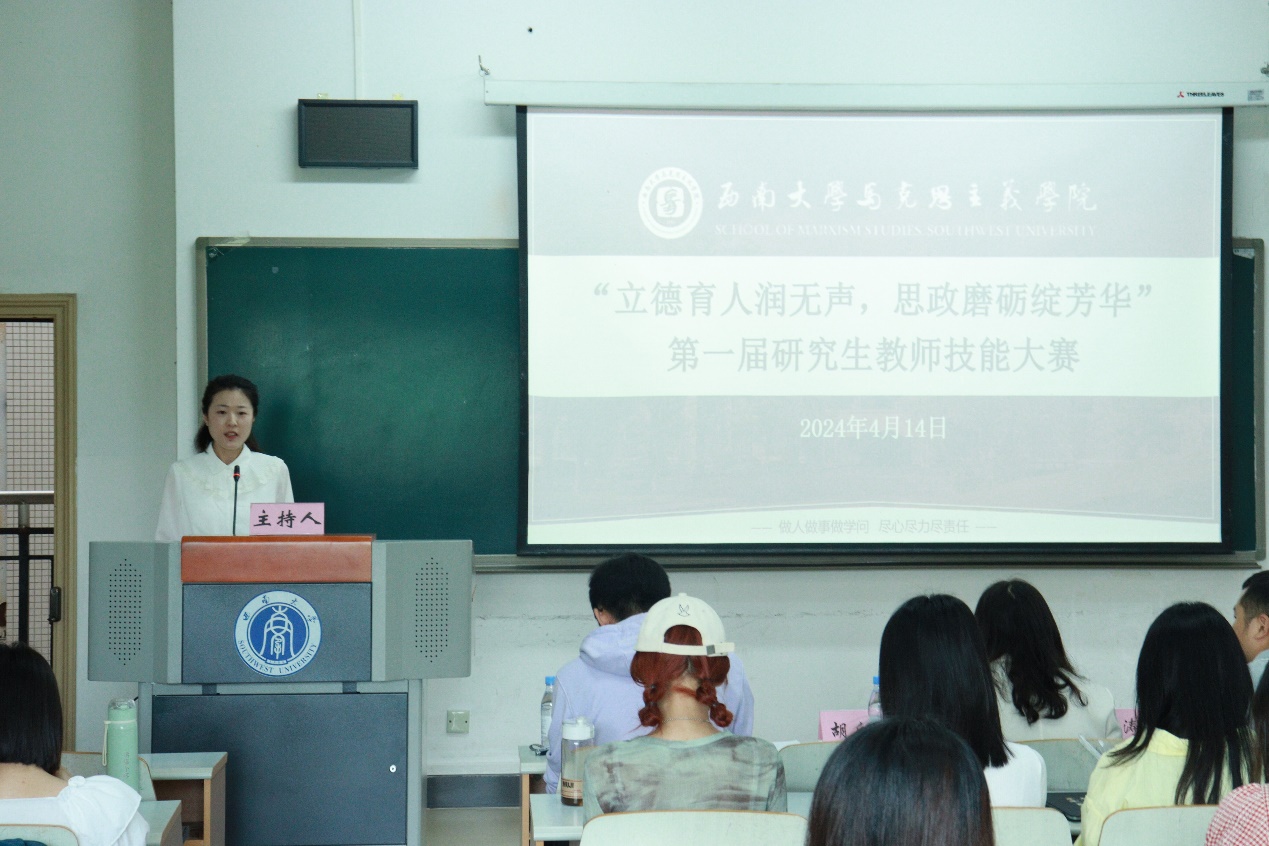 为深入贯彻落实习近平总书记在学校思想政治理论课教师座谈会上的重要讲话精神,进一步提升思政课教师后备人才站好讲台、讲好思政课的能力素质,提高研究生就业核心竞争力,4月14日上午,点点taptap官方网站第一届研究生教师技能大赛决赛于第十教学楼0305教室举行。本次比赛邀请到教师教育学院副教授胡白云、点点taptap官方网站副教授陈涛、点点taptap官方网站附属中学政治教研组组长申佳鑫老师担任评委,点点taptap官方网站研究生辅导员黄林和研究生一起参与本次活动。比赛由马克思主义公司研究生会综合办工作人员欧露雨主持。