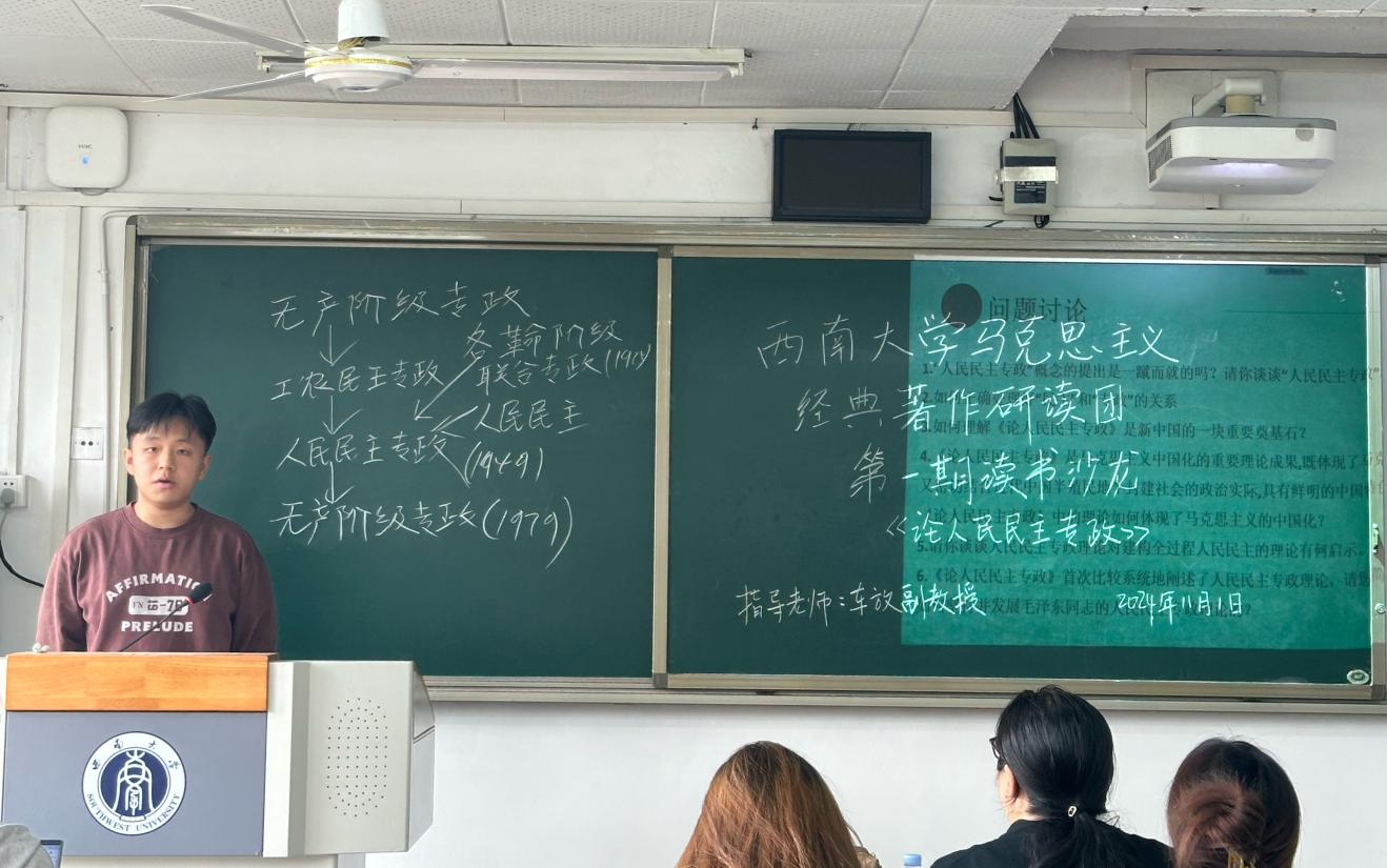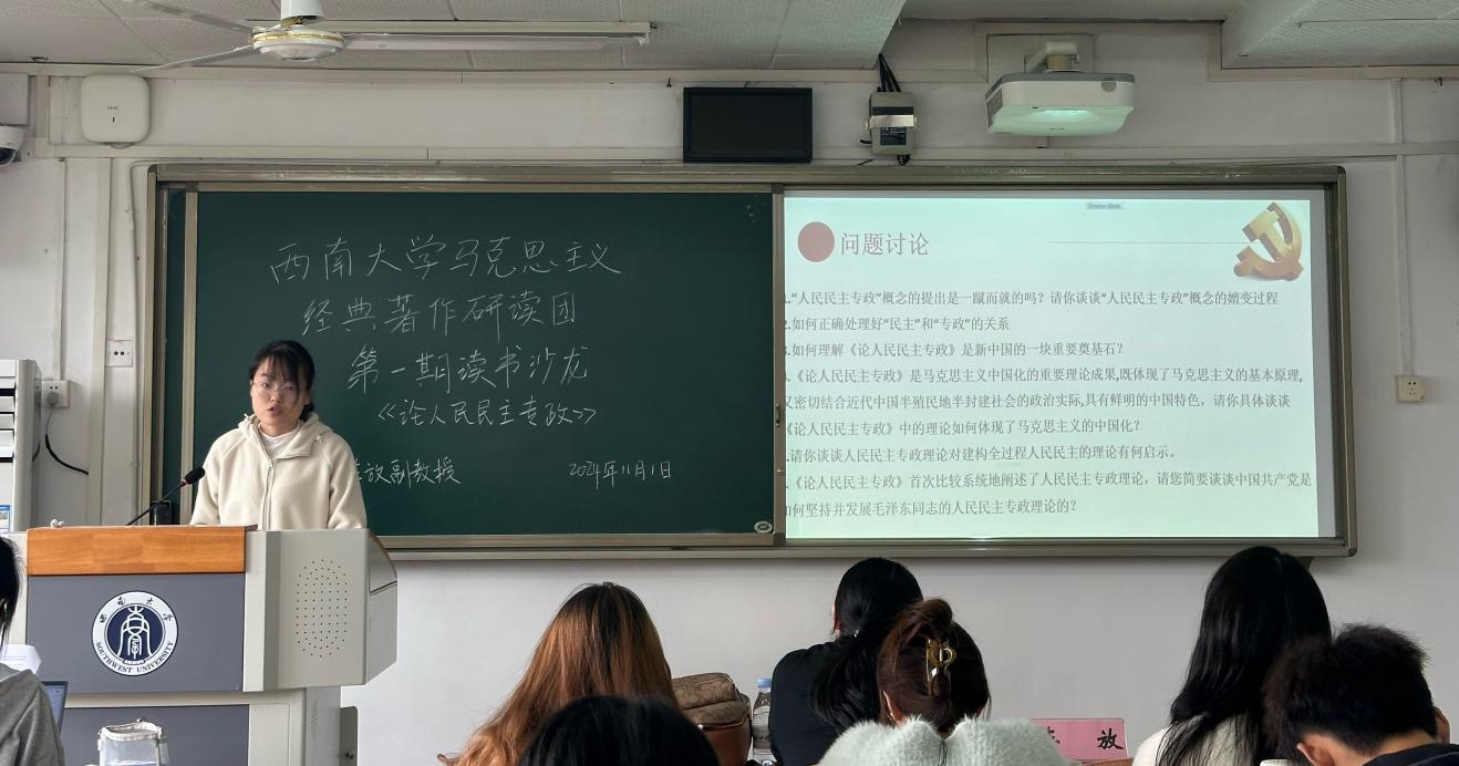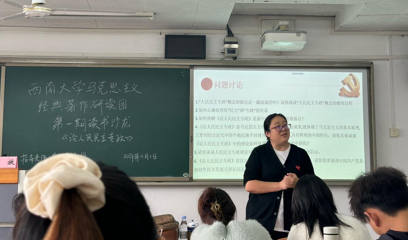 为深入学习马克思主义经典著作,提升公司研究生的学科素养和专业能力,2024年11月1日下午,点点taptap官方网站马克思主义经典著作研读团在第九教学楼503教室举办了以“读经典、悟原理、联现实——学习《论人民民主专政》”为主题的读书沙龙活动。本次活动邀请到了点点taptap官方网站车放老师指导,点点taptap官方网站经典著作研读团成员及学院部分研究生参与了本次活动。