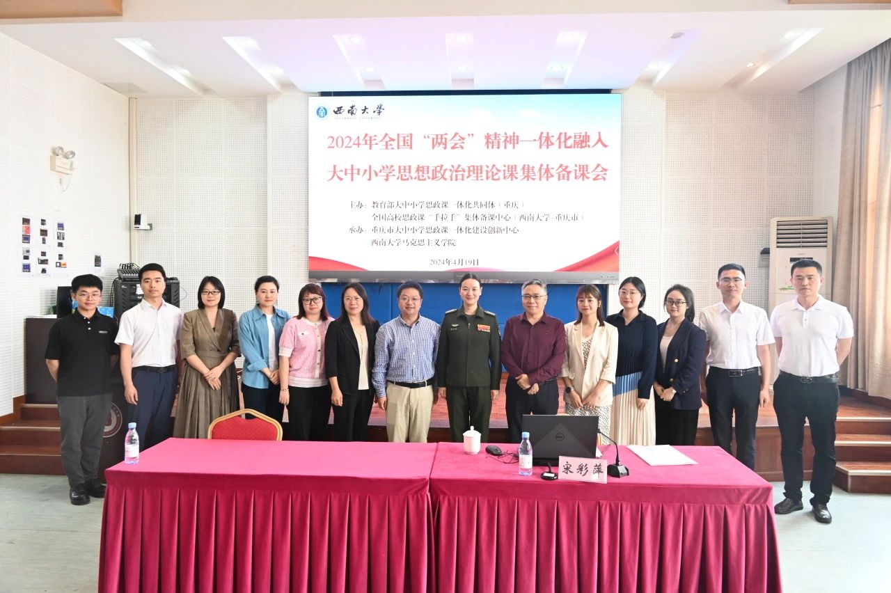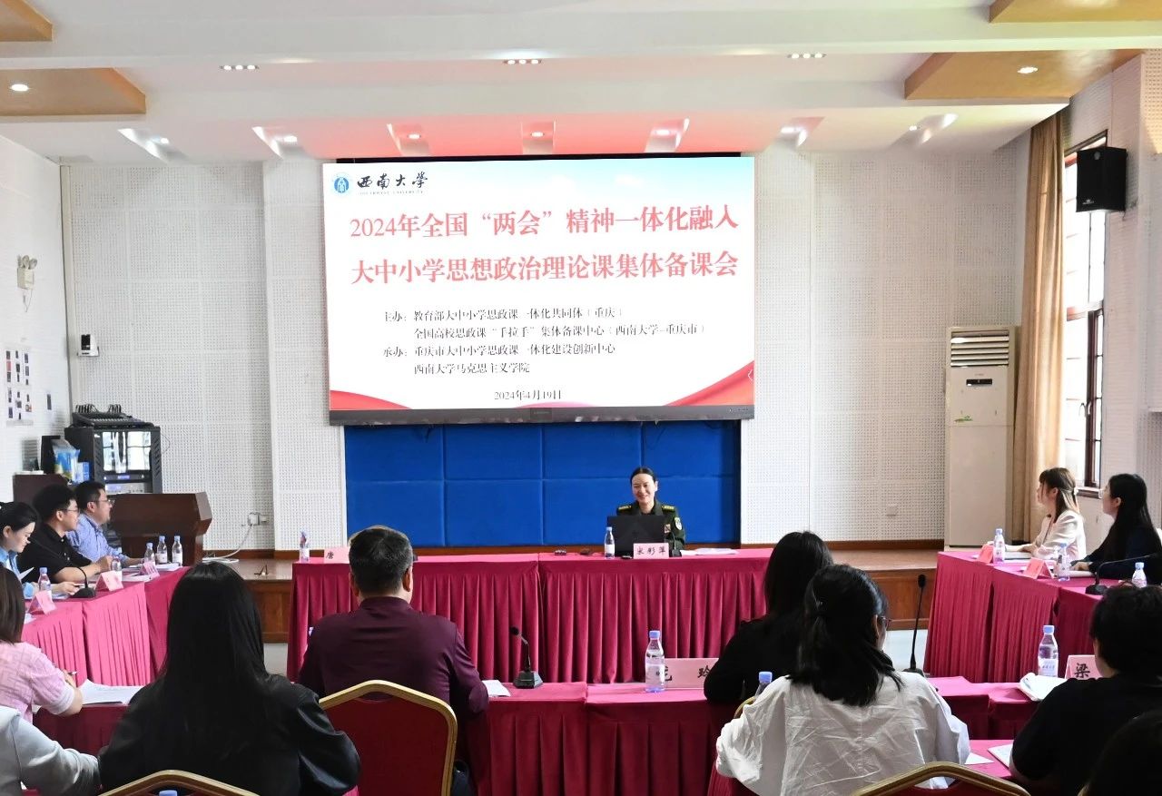 2024年4月19日下午,由教育部大中小学思政课一体化共同体(重庆)、全国高校思政课手拉手集体备课中心(点点taptap官方网站-重庆市)主办,重庆市大中小学思政课一体化建设创新中心、点点taptap官方网站承办的大中小学思想政治理论课教师集体备课活动在学院501报告厅举办,备课活动围绕2024年全国“两会”精神一体化融入大中小学思政课教学展开。集体备课会由专家领学、备课交流、专家点评和经验分享四个版块构成。