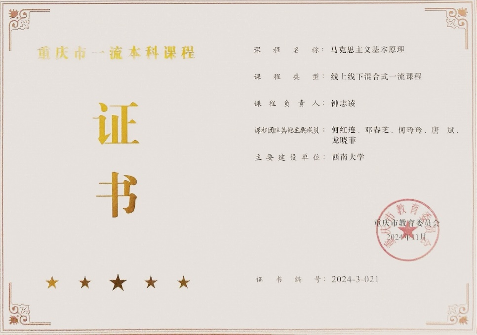 据悉,这是“马克思主义基本原理”课程获批重庆市一流本科课程后对集体备课形式的一次探索,以期更好实现课程建设与党的创新理论武装同步推进,不断推进课程内涵式发展。