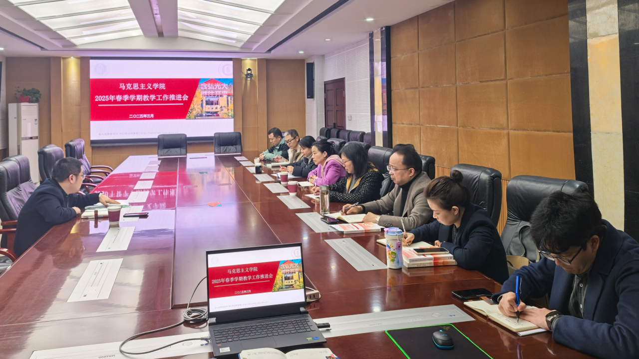唐斌整体介绍了本学期教学工作的重点内容:一是重视集体备课,做到内容有设计,形式有特色,全方位提升备课质量和授课水平;二是加强教学团队建设,进一步完善团队建设方案,不断提升老师们参与集体备课、教研活动、教学比赛等的积极性;三是强化技术赋能,努力打造和不断建设高质量的精品课程;四是规范教学管理,确保教学有序运行。唐斌还对近期教学工作提出要求,强调要将习近平总书记在全国两会期间系列重要讲话精神和全国两会精神有机融入思政课教学,要持续推进课程建设,优化人工智能在教学中的应用,努力推动学院人才培养和思政课建设高质量发展。 会上,各系部主任对本学期集体备课的开展,近期教研室工作安排等进行了交流,大家纷纷表示要拥抱信息技术、用好人工智能,持续赋能课程教学。